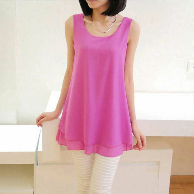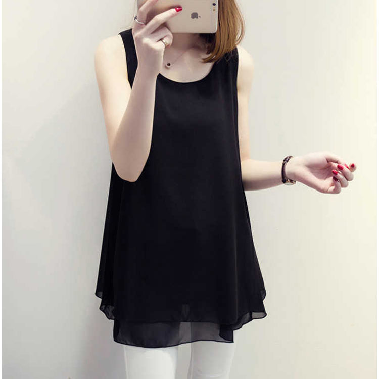シフォンタンクトップ ロング丈 レディース 夏服 大きサイズ タンクトップ トップス ノースリーブ プルオーバー Uネック 体型カバー シンプル 無地 Aライン 夏 おしゃれ 可愛い 送料無料 S~5XL