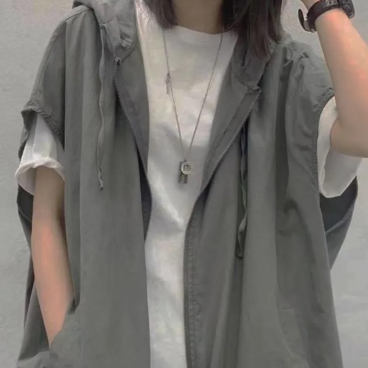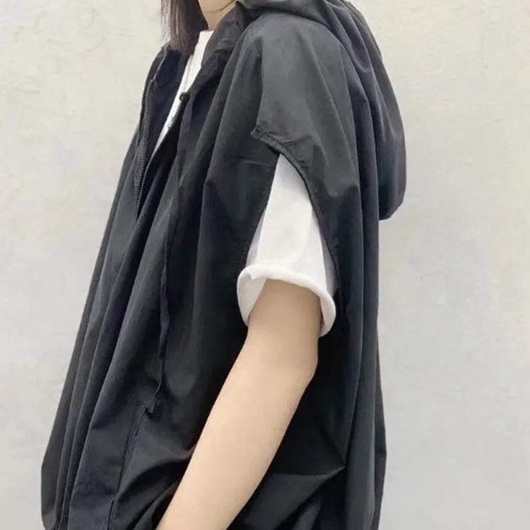 半袖 パーカー レディース ベスト フード付き 半袖パーカー 前開き サマーベスト トップス ジレ ジャケット 涼しい 春夏 アウター ポケット付き ジップアップ カジュアル ノースリーブ アウター ライトアウター レイヤード 重ね着
