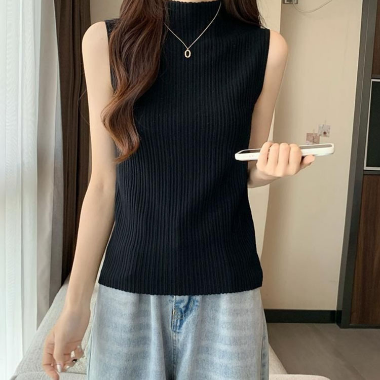 プリーツ タンクトップ レディース ハイネック ノースリーブ Tシャツ ニットトップス ストレッチ トップス ハイネックニット レイヤード シンプル 春 夏 全5色 サマーニット XS S M L XL