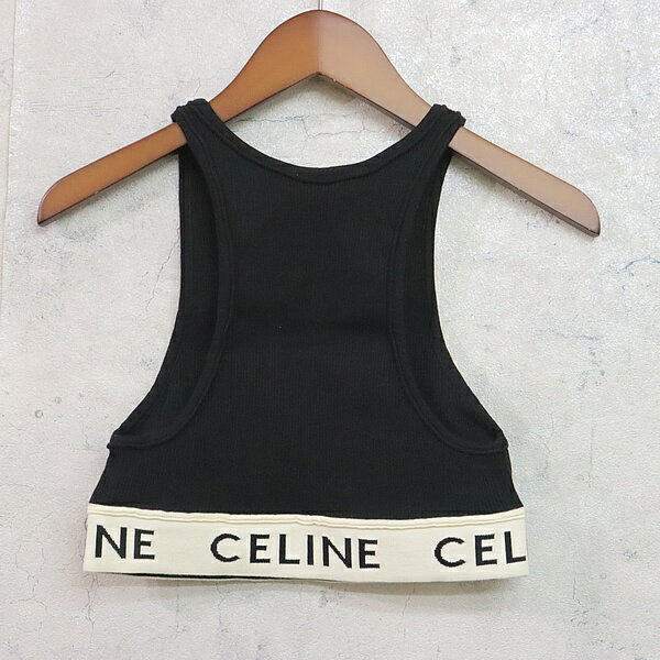 【広尾店】セリーヌ CELINE ロゴ ニット スポーツブラ タンクトップ ブラック×黒ロゴ 2A68L372N size:XS 【16251】
