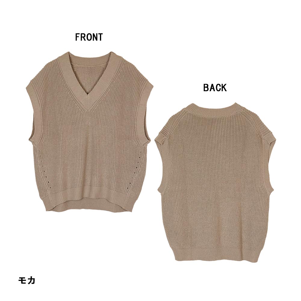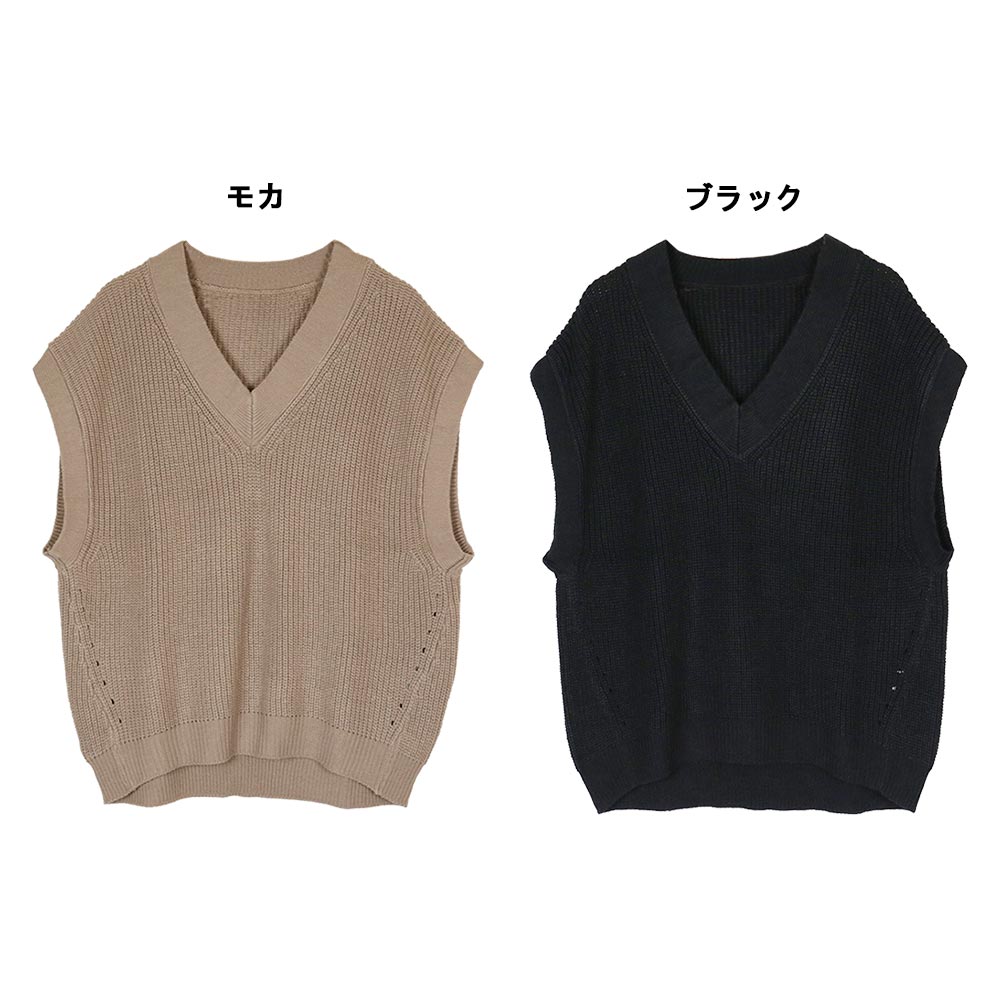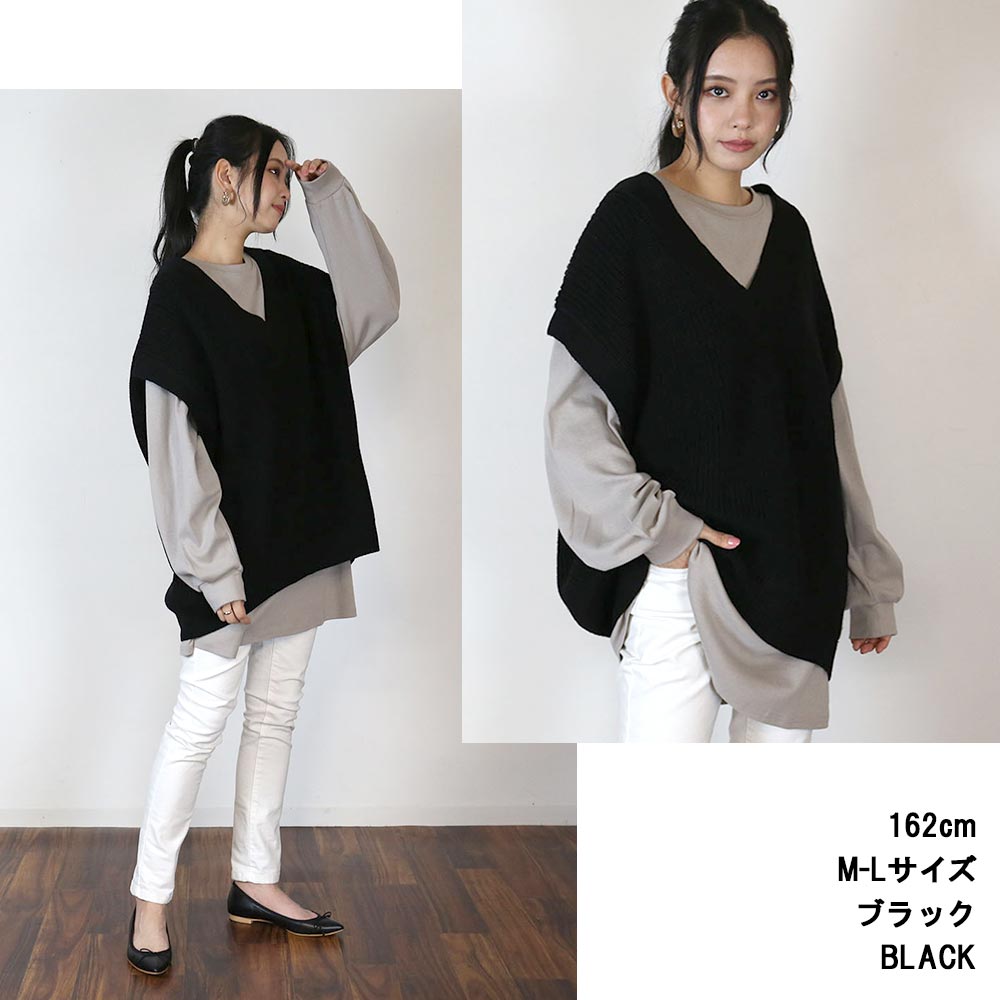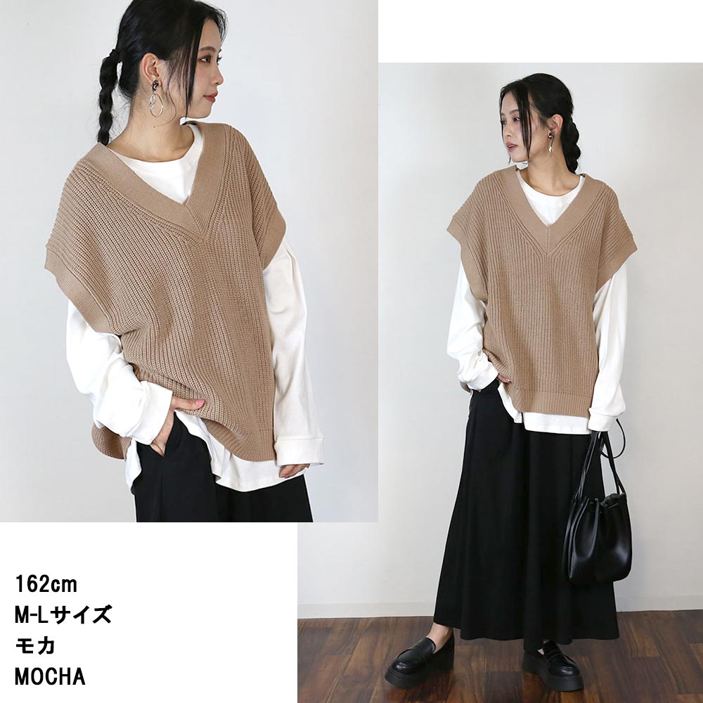 【クーポンで30%OFF!】5ゲージVネックバルーンベスト レディース 大きいサイズ M L LL 3L 4L5L 黒 モカ レビュー特典あり