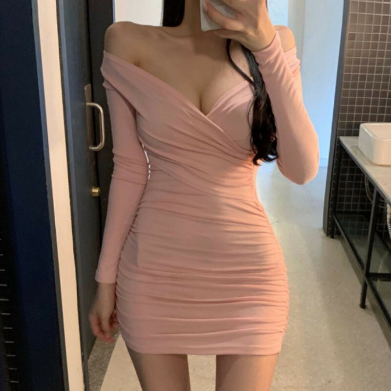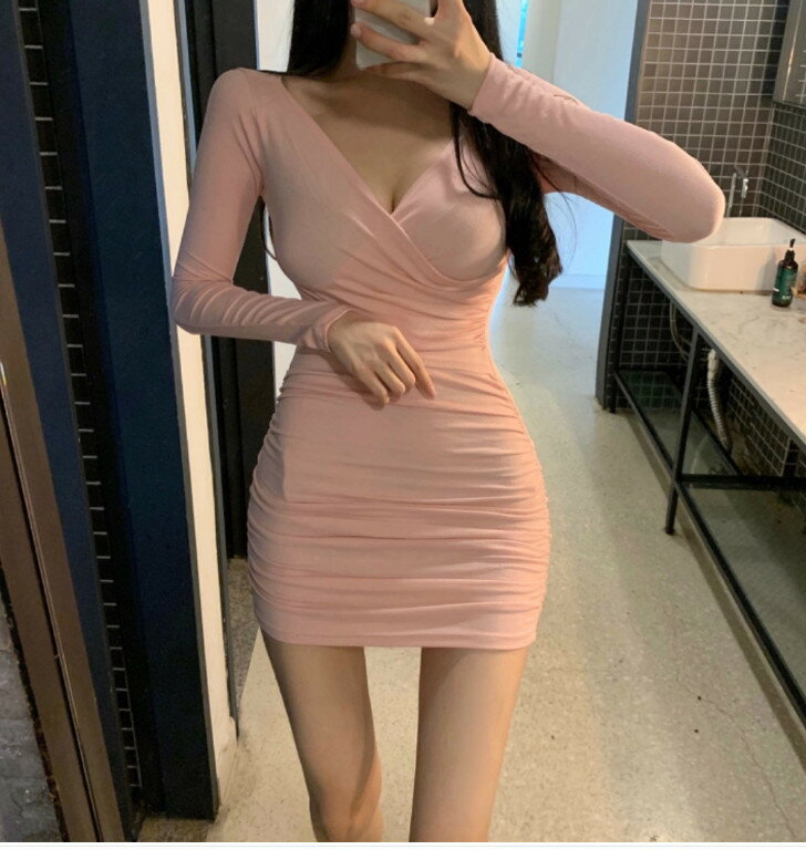 【4日20時〜 先着300名!4時間限定 10%OFFクーポン】 ニット レディース 長袖 ワンピース 韓国ファッション セクシーニット Vネック セクシーコスチューム セクシー 彼女 可愛い 過激