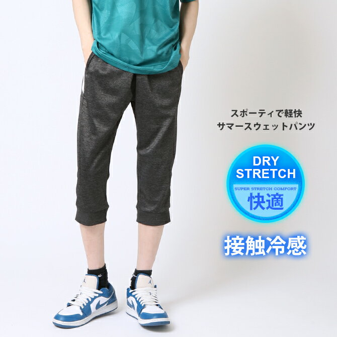 ジョガーパンツ メンズ 夏 接触冷感 ドライストレッチ スウェットパンツ ハーフパンツ 7分丈 ひざ下 イージーパンツ クロップドパンツ カチオン染め 快適 7分丈 サイド切替