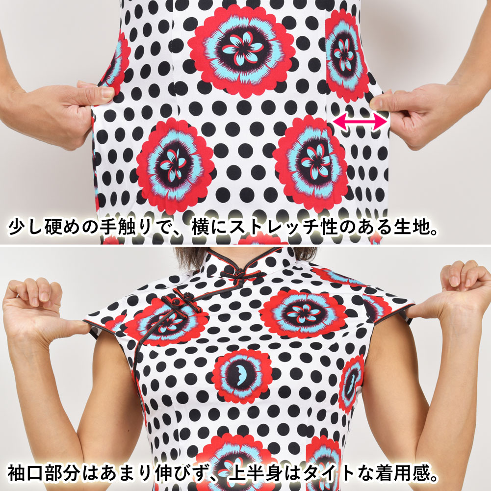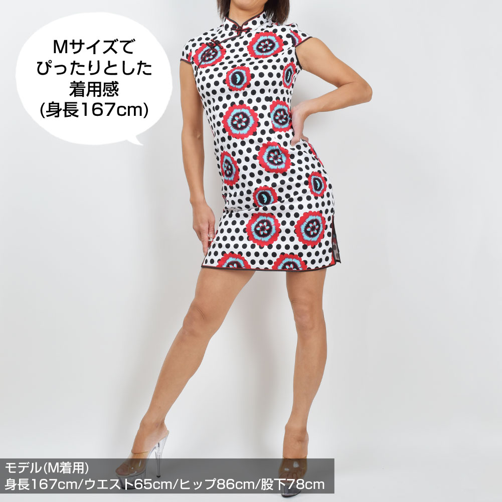【即納】ステージ衣装 チャイナドレス ミニドレス ワンピース チャイナ服 水玉 ドット 花柄 大人 ハロウィン 仮装 余興 衣装 二次会 パーティー RC86272 レディース ストレッチ素材 半袖/ミニ丈/ファスナー S-M-L [M便 2/3] 30cp