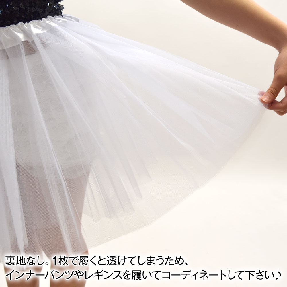 【即納】ダンス衣装 パニエ チュチュ パニエスカート チュチュスカート 3枚重ねチュール ショート丈 コスプレ イベント ステージ衣装 ボリューム ふんわり 透ける JCB201S9 レディース ジュニア /ウエストゴム/ホワイト 白 フリー