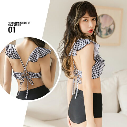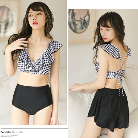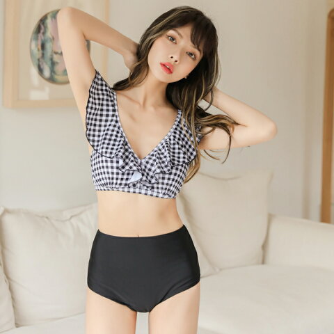 水着 レディース 体型カバー ビキニ 大きいサイズ 3点セット パッド付き セパレート ショートパンツ ハイウエスト ギンガムチェック 無地 黒 ラッシュガード 女子 韓国 シンプル フィットネス水着 ぽっちゃり カバーアップ 体系カバー 20代 30代 40代 50代 60代