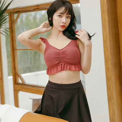 水着 レディース ビキニ 体型カバー 2点セット 大きいサイズ セパレート パッド付き ピンク ブラウン ラッシュガード 小胸 盛れる トレンド 韓国 シンプル フィットネス水着 ぽっちゃり ハイウエスト カバーアップ おしゃれ 体系カバー 20代 30代 40代 50代 60代
