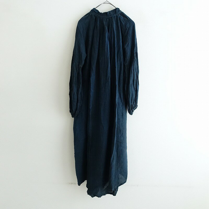 【定価6.0万】タブリク Tabrik 泥藍染めリネンバルーンスリーブシャツワンピース 【中古】【92C52】