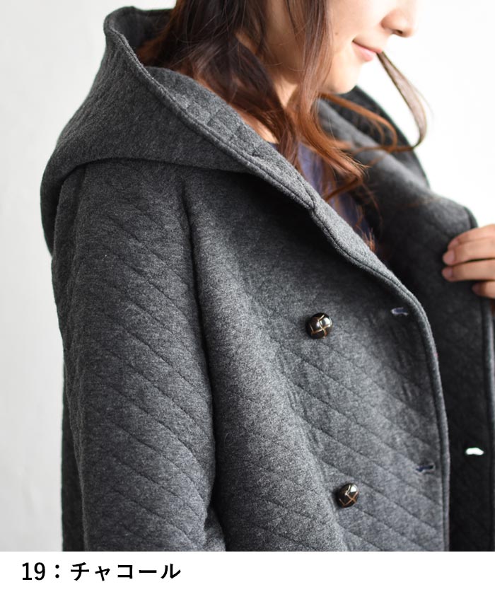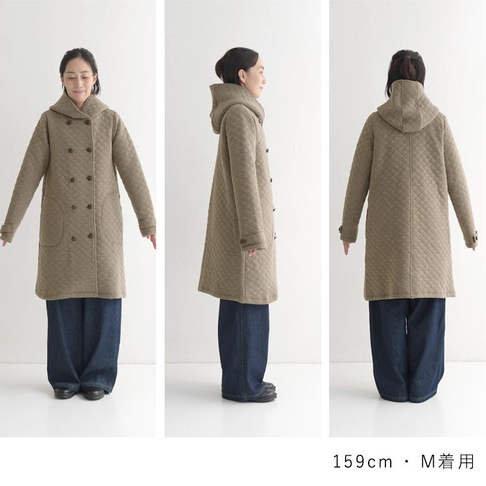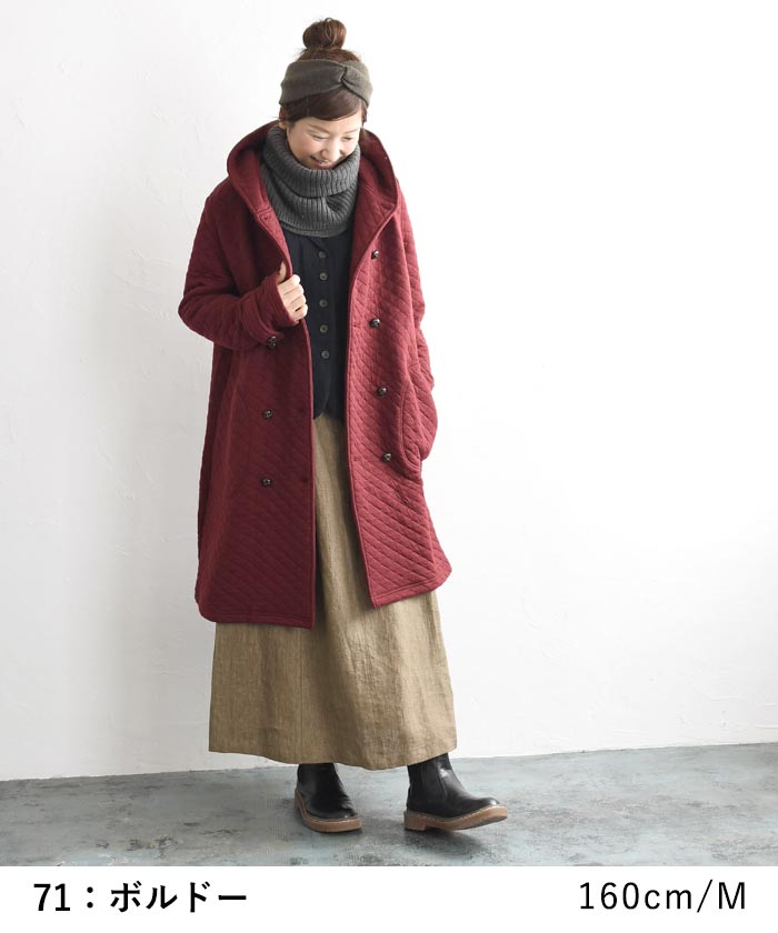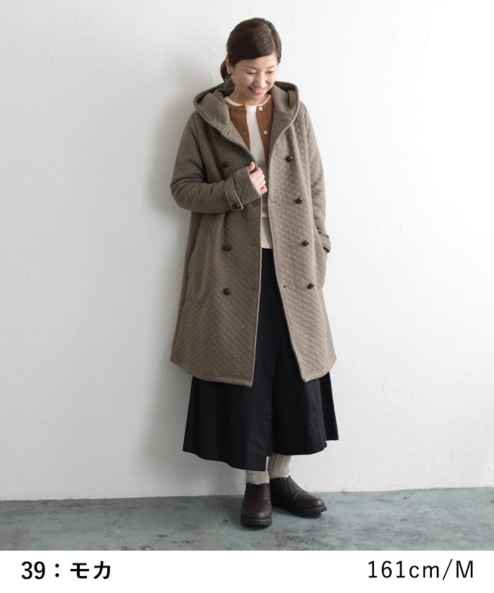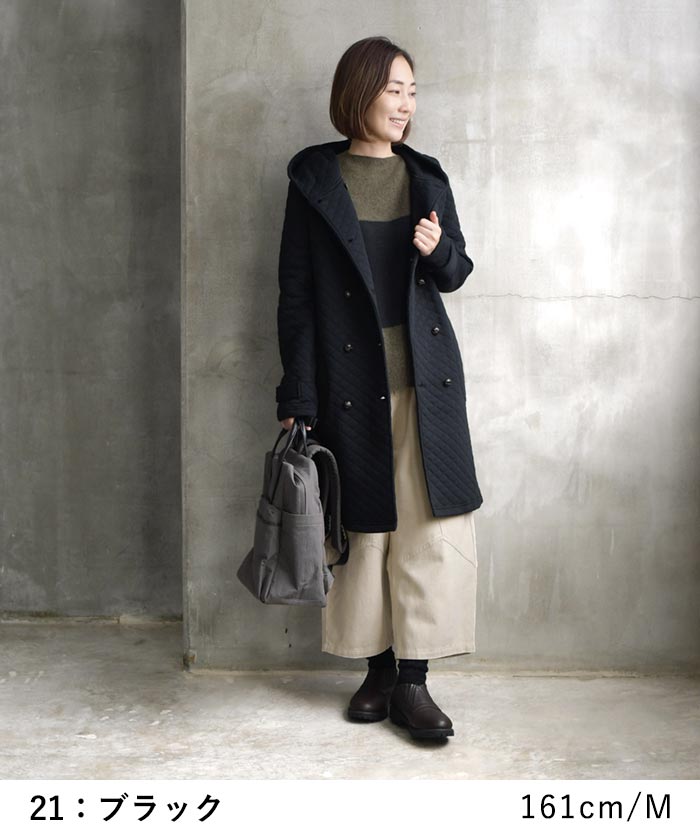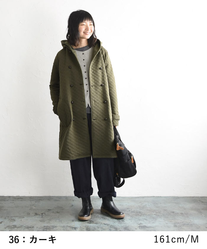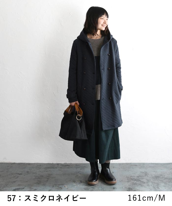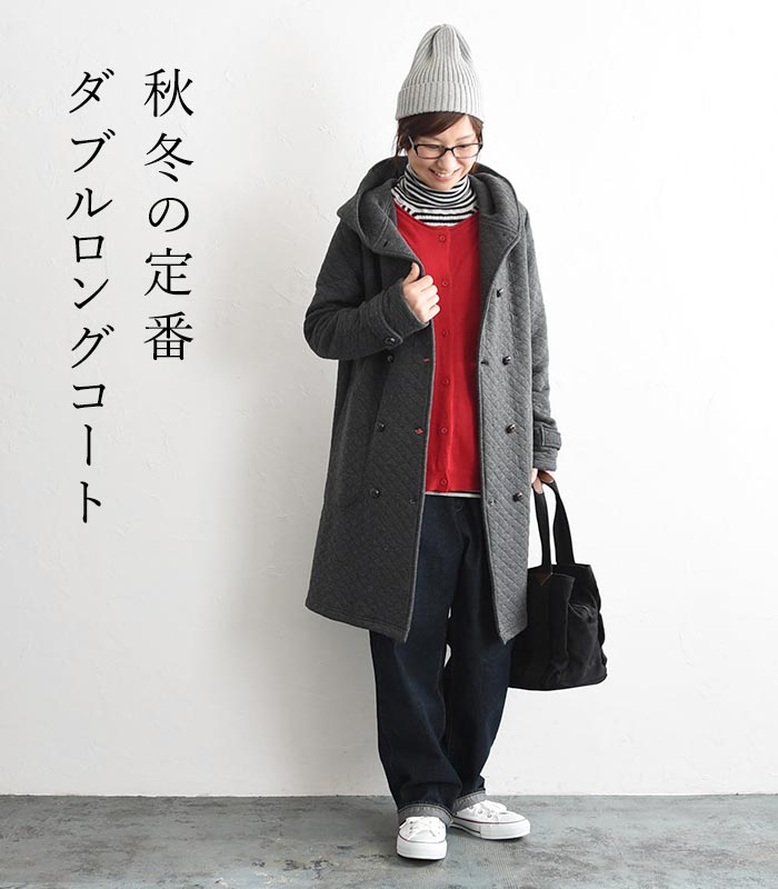 オリジナル キルティングコート ロング ダブル コート フード付き M~3L/着後レビューでクーポン☆ カジュアル ナチュラル アウター レディース エコロコ e+ Ms,Ls,LL,3L,/大きいサイズ 秋 冬 30代 40代 50代 23AW0904R,