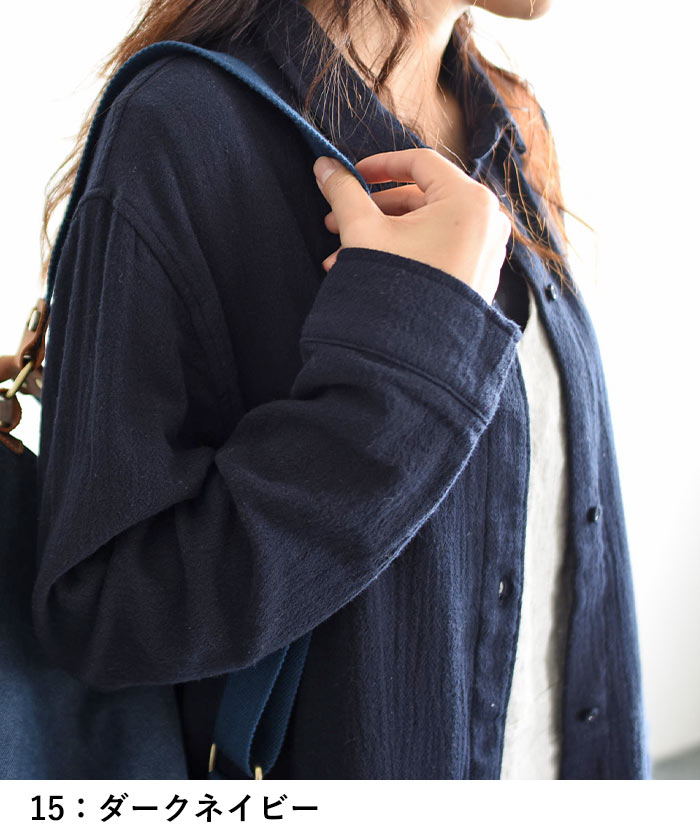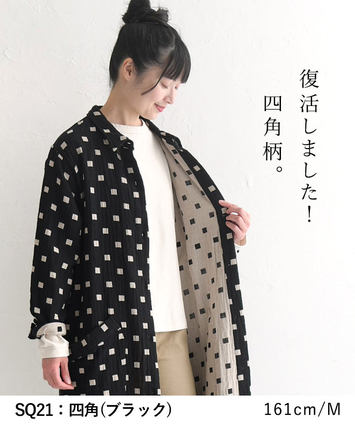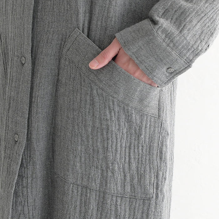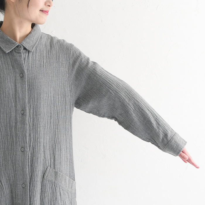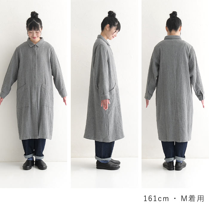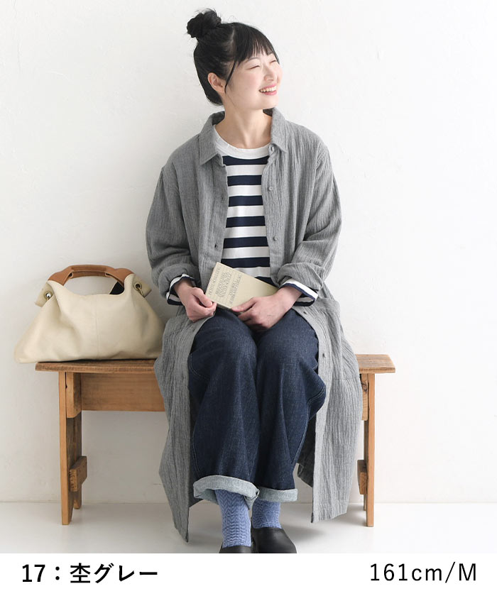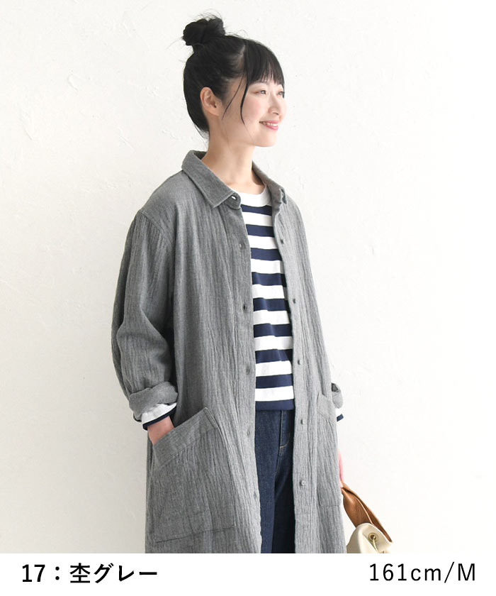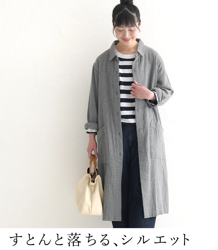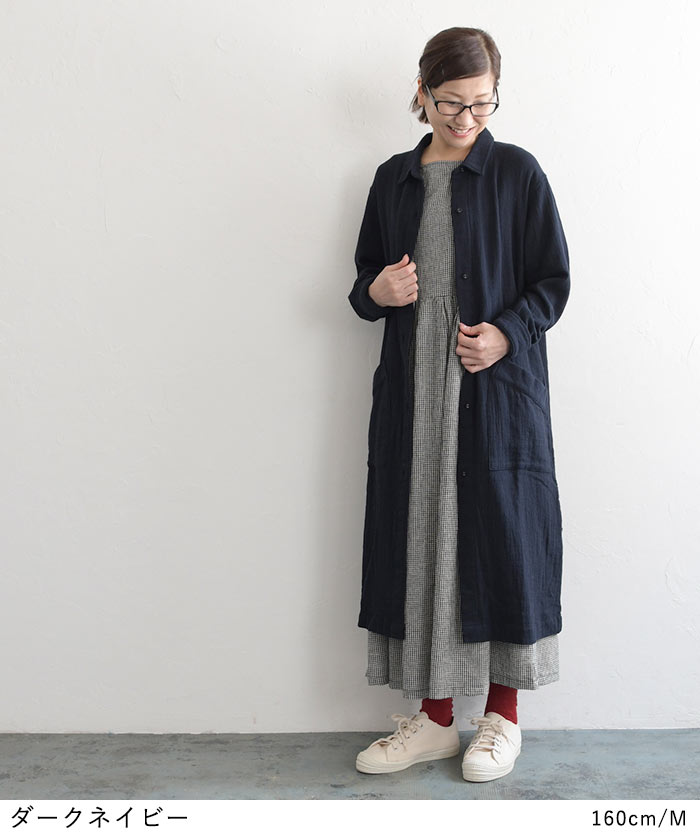 コートワンピース 前開き ロング レディース 長袖 大きいサイズ 20番手ダブルガーゼ 綿/着後レビューでクーポン☆ カジュアル ナチュラル オリジナル コットン はおり エコロコ e+ Ms,Ls,LL,3L,/春 秋 秋服 30代 40代 50代 24AW0802R,