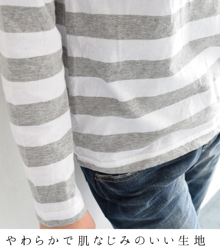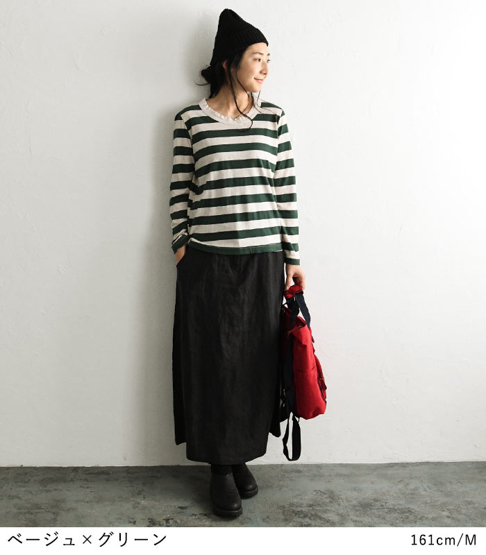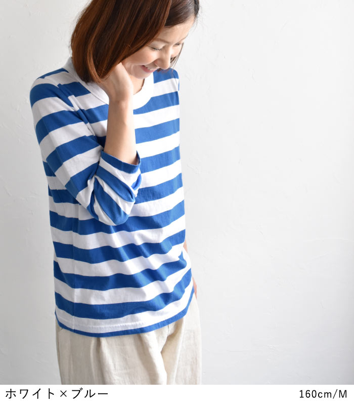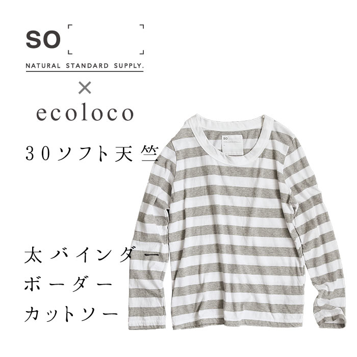 【メール便可】オリジナル 綿100% カットソー ボーダーカットソー/ 着後レビューでクーポン☆ 長袖 Tシャツ コットン トップス ロンT 太バインダー レディース エコロコ so+ e+ Ms,Ls,LL,3L,/ 春 夏 秋 冬 春服 大きいサイズ 24SS0222R,