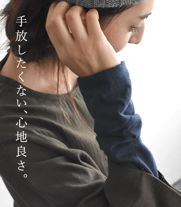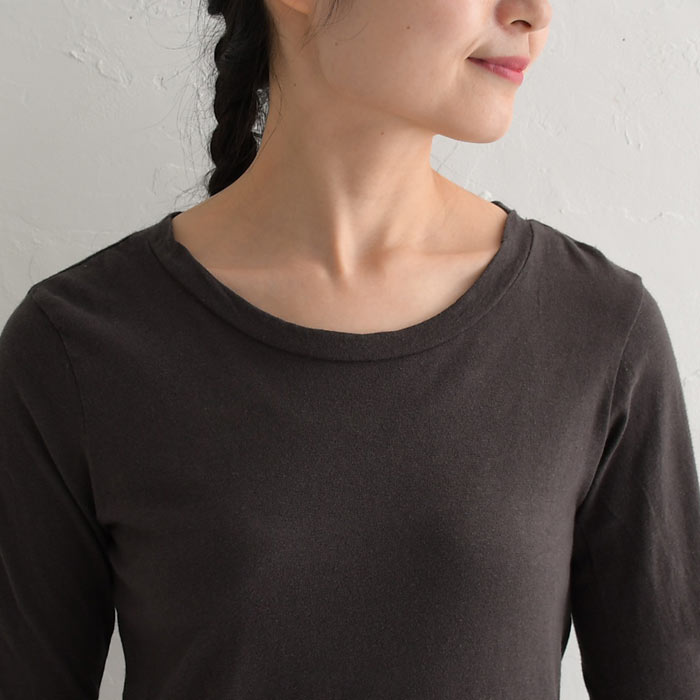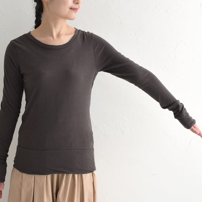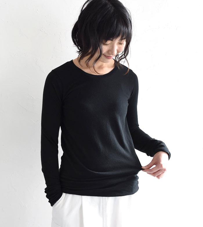 【メール便可】 M~3L 日本製 綿100% クルーネックTシャツ カットソー/ 着後レビューでクーポン☆ コットン ラフィーガーゼ インナー 長袖 無地 レディース エコロコ e+ Ms,Ls,LL,3L,/ 大きいサイズ 春 秋 冬 秋服 30代 40代 50代 24AW0726R,