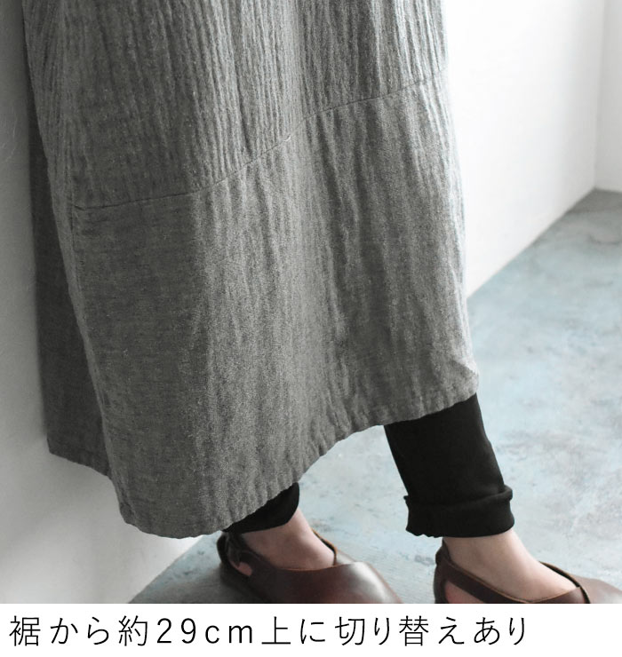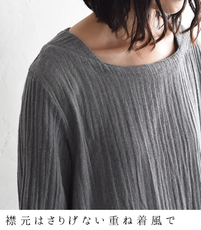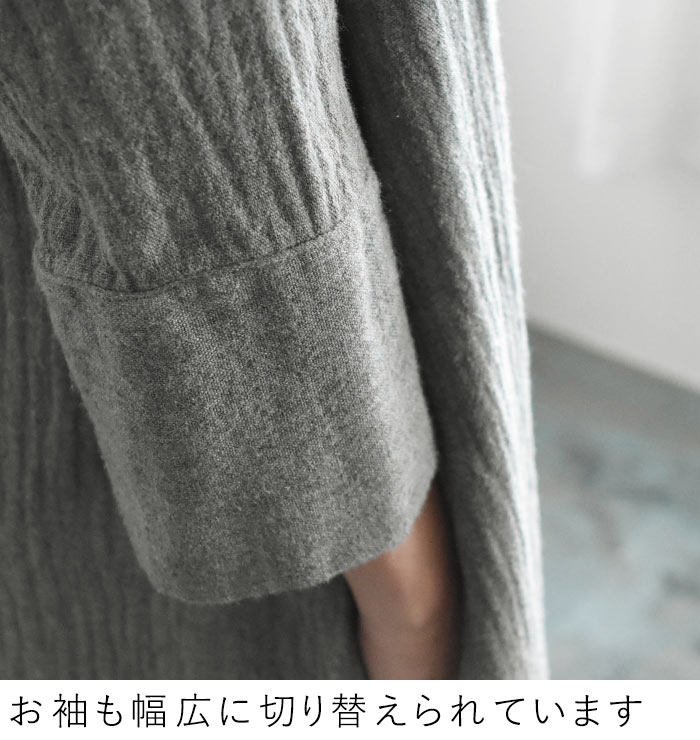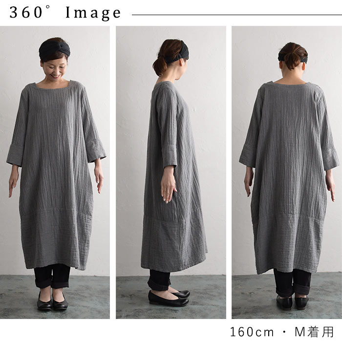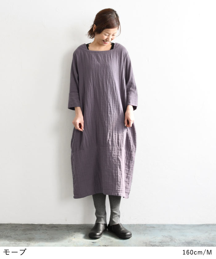 M~3L オリジナル コクーンワンピース 20番手ダブルガーゼ 綿/着後レビューでクーポン☆ ナチュラル カジュアル 七分袖 Wガーゼ ゆったり レディース エコロコ e+ Ms,Ls,LL,3L,/ 大きいサイズ 春 秋冬 24SS0209R,