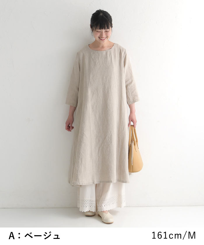 D*g*y リネン オックス フレアワンピース オケージョン セレモニー 七分袖 シンプル Aライン 麻100%/カジュアル ナチュラル dgy お出かけ きれいめ レディース エコロコ sel, Ms,Ls,LL,3L/大きいサイズ 春 夏 秋 冬 24SS0412R,