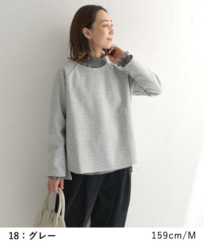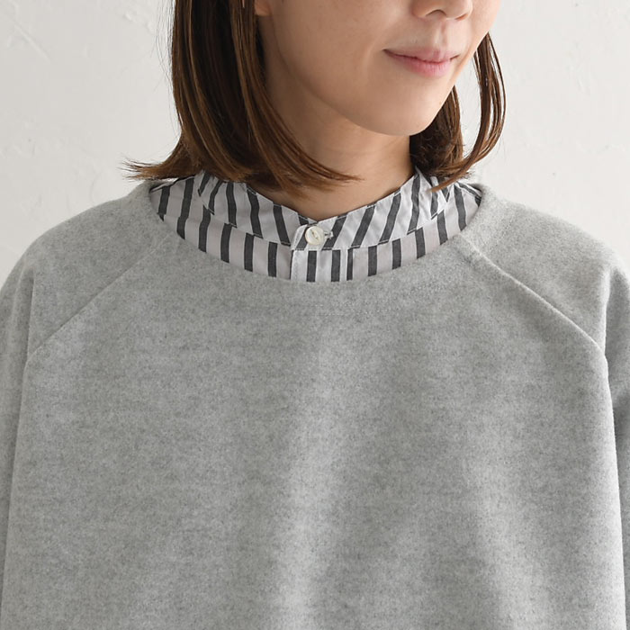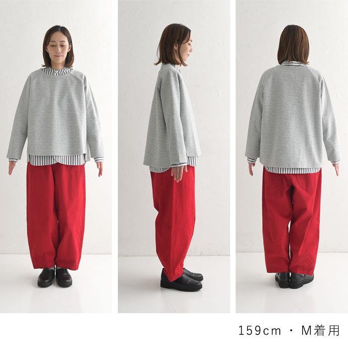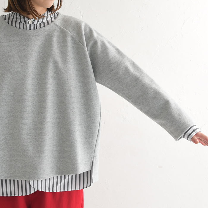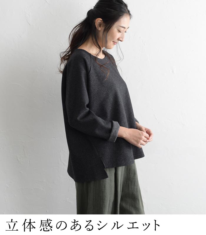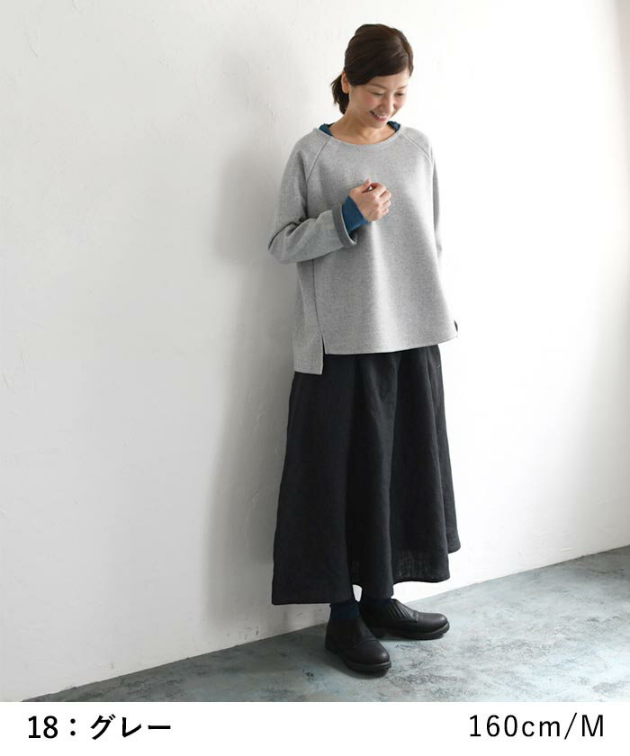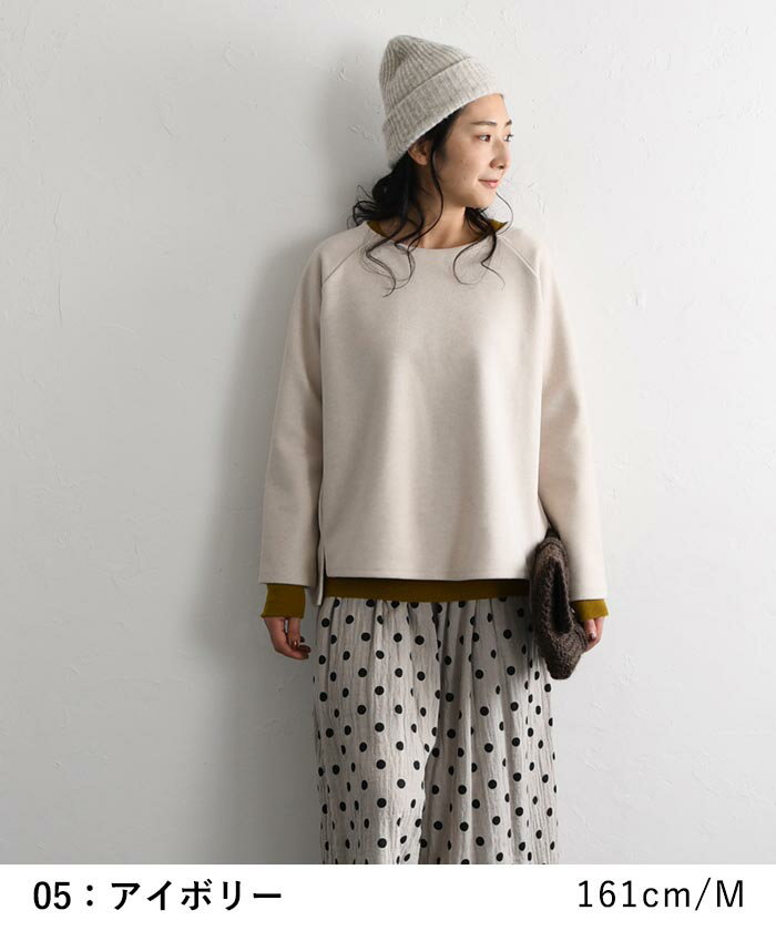 M〜3L プルオーバー レディース 長袖 起毛 クルーネック ラグラン/ 着後レビューでクーポン☆ カジュアル ナチュラル Wフェイス 無地 ワイド 前後差 ゆったり トップス エコロコ e+ Ms,Ls,LL,3L,/ 大きいサイズ 30代 40代 50代 24AW1018R,
