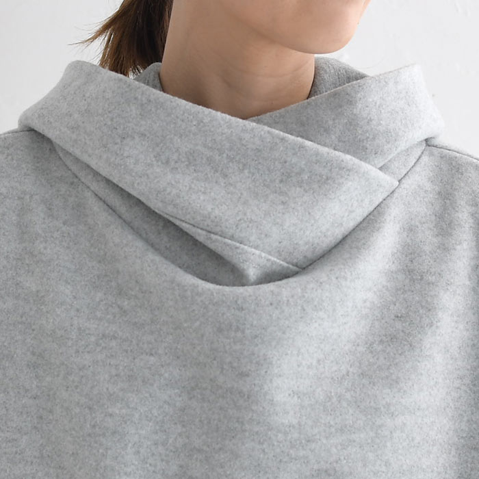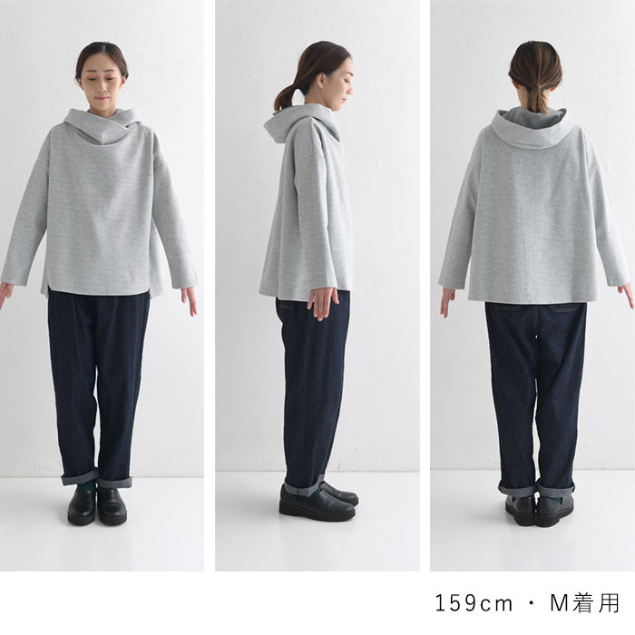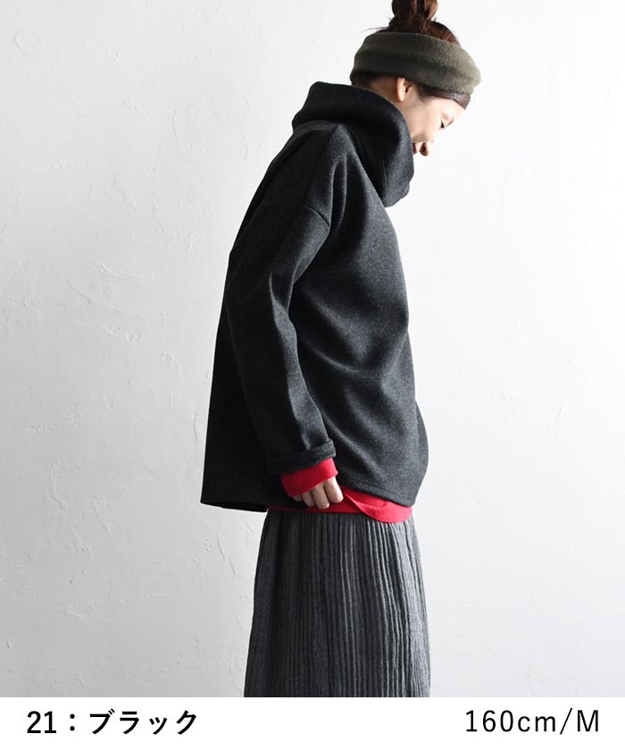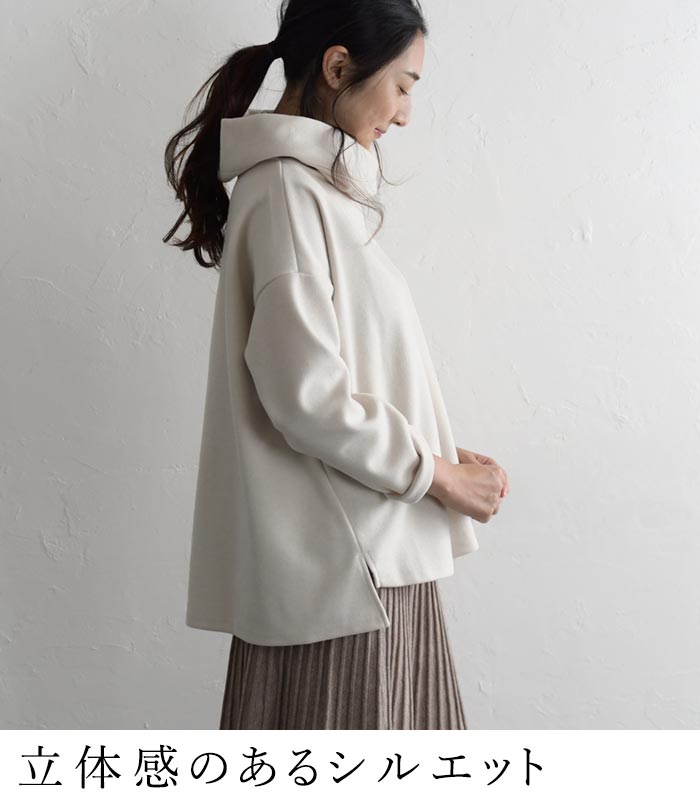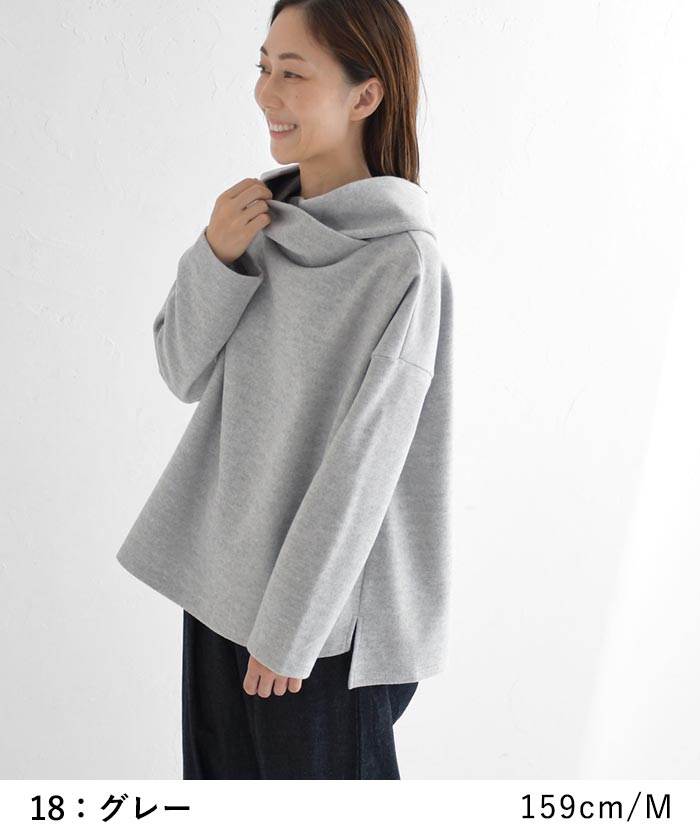 M〜3L パーカープルオーバー 長袖 レディース 起毛 重ね襟/ 着後レビューでクーポン☆ カジュアル ナチュラル あったか Wフェイス 無地 フード付き 暖かい ゆったり トップス エコロコ e+ Ms,Ls,LL,3L,/ 大きいサイズ 30代 40代 50代 24AW1018R,