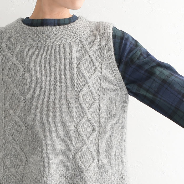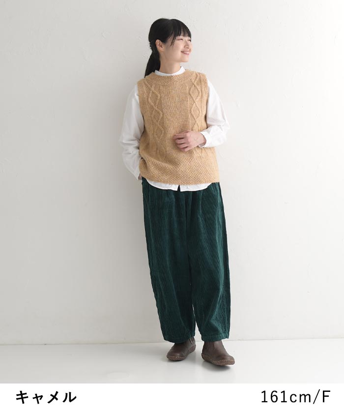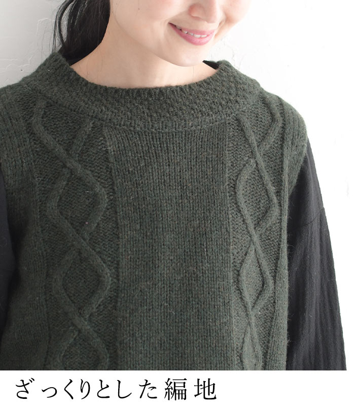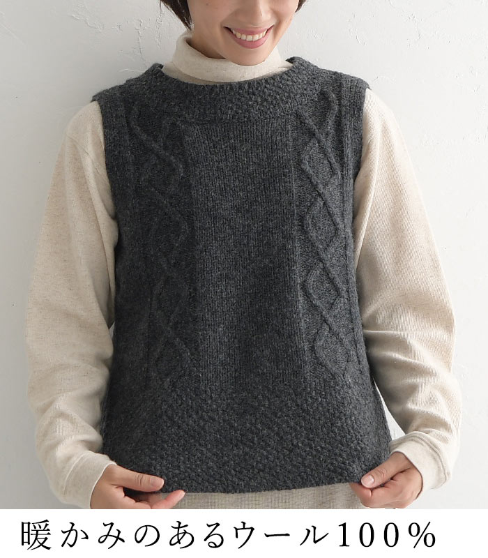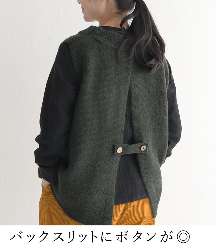 SO[] 後ろ開き ニットベスト 重ね着 ウール100%/カジュアル ナチュラル エスオー ゆったり クルーネック 体型カバー トップス エコロコ sel, Ms,Ls, so+ /ベスト レディース 秋冬 23AW1020R,