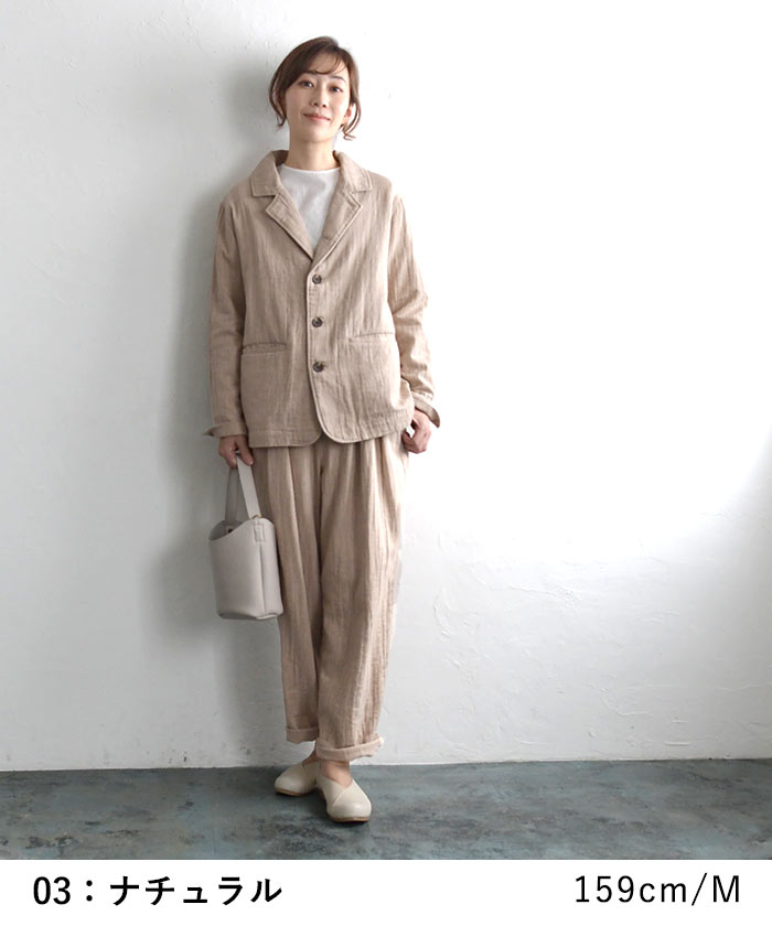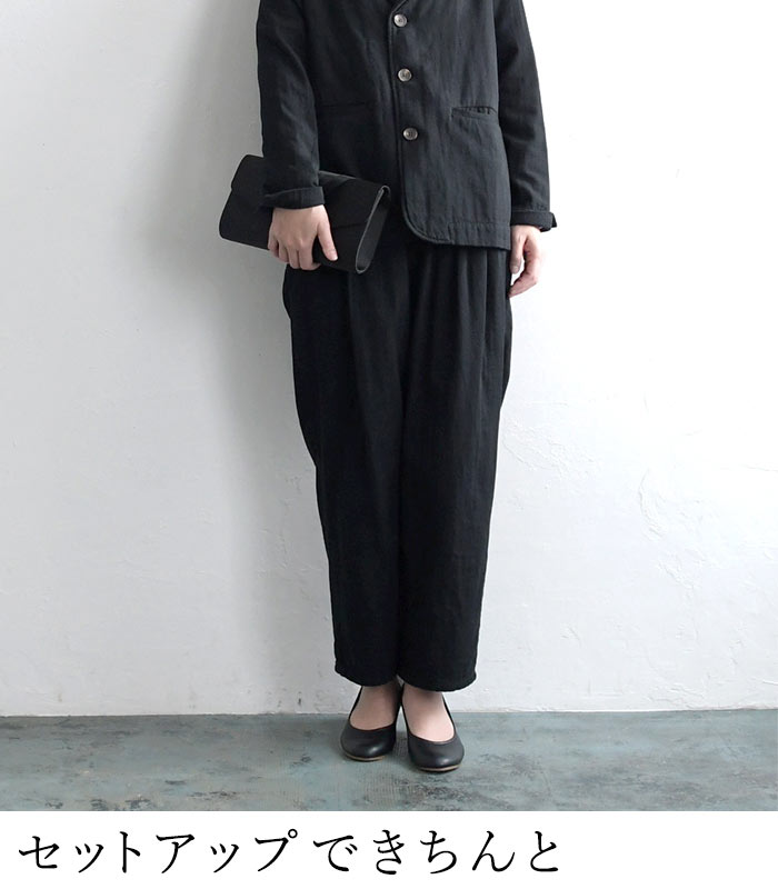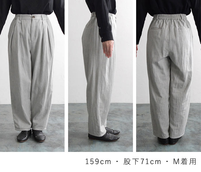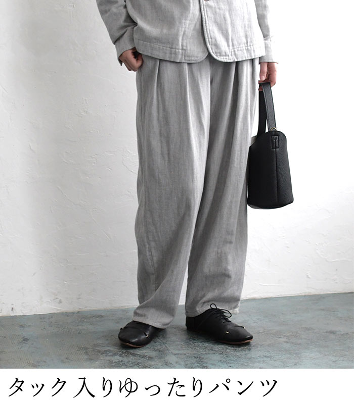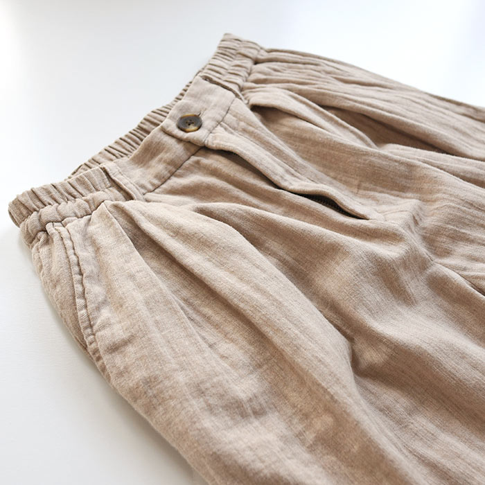オリジナル ツイルガーゼ ゆったり タックパンツ 起毛 M~3L 綿100%/ナチュラル セレモニー オケージョン ボトムス ママスーツ 卒業式 体型カバー レディース ウエストゴム エコロコ e+ Ms,Ls,LL,3L,/春 秋 冬 大きいサイズ 24SS1201R,