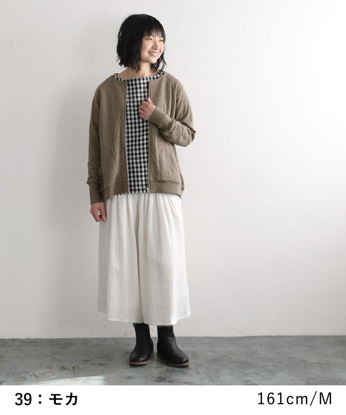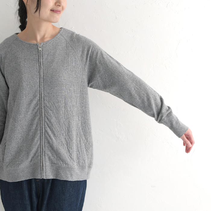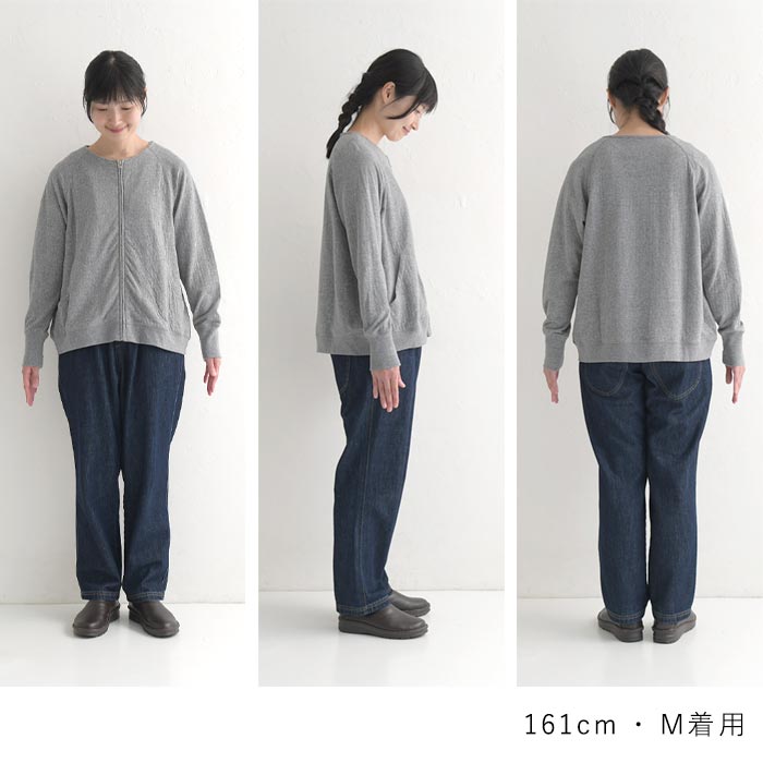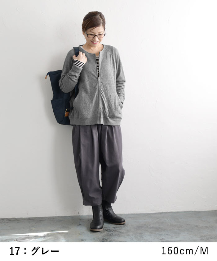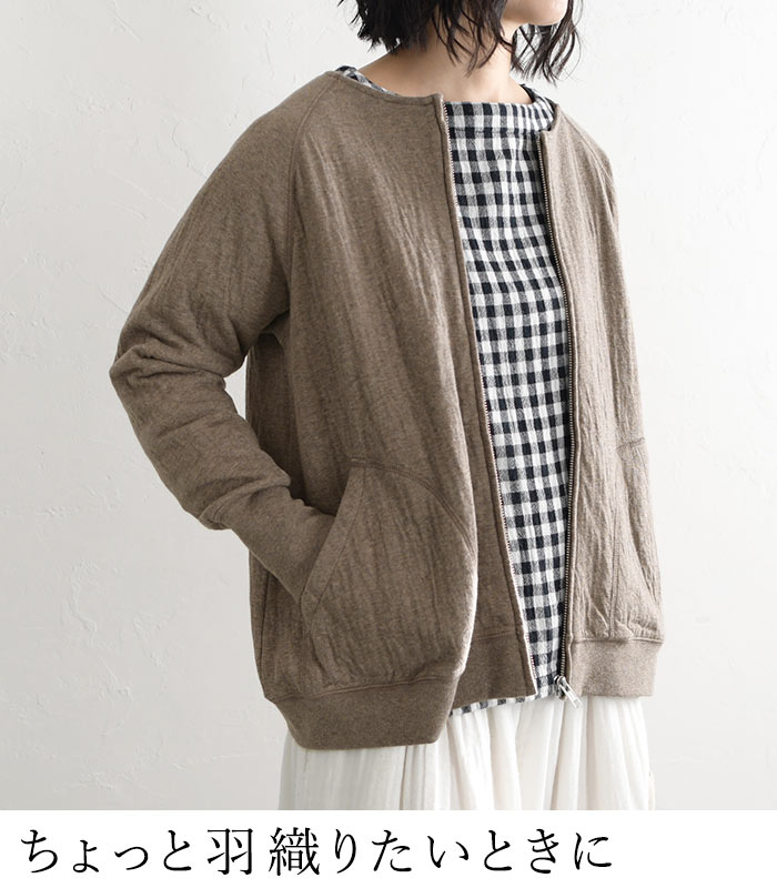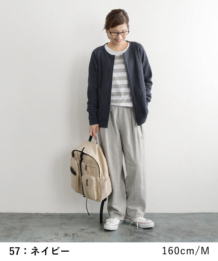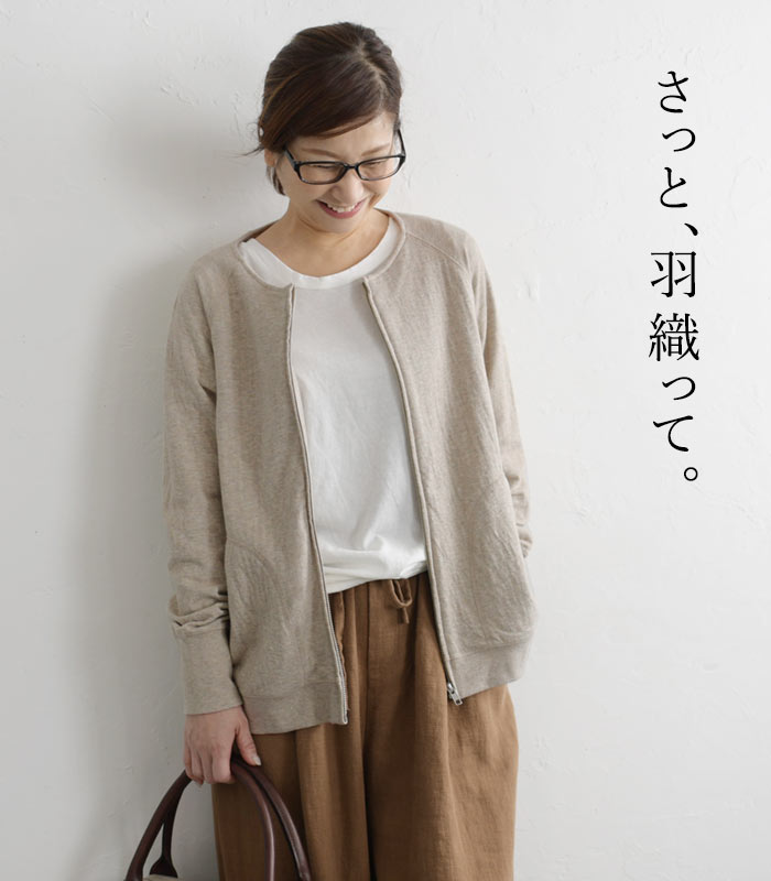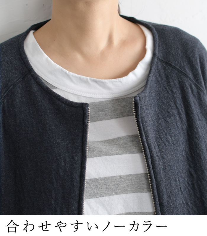 M〜3L オリジナル コットン接結 ジップ ノーカラー ジャケット 綿100%/着後レビューでクーポン☆カジュアル ライトアウター ブルゾン カーディガン e+/レディース 春 秋 大きいサイズ 30代 40代 50代 24SS0202R,