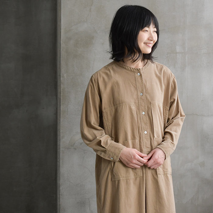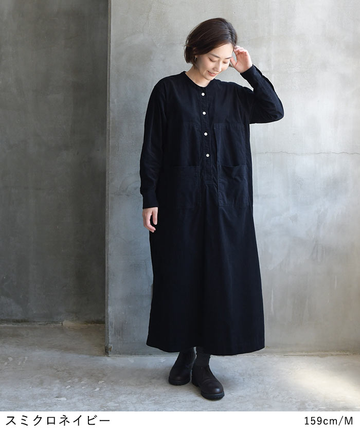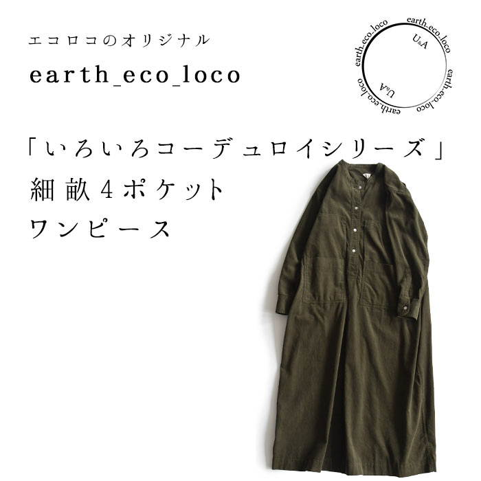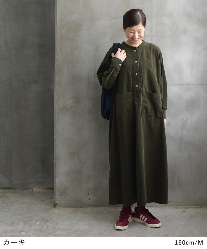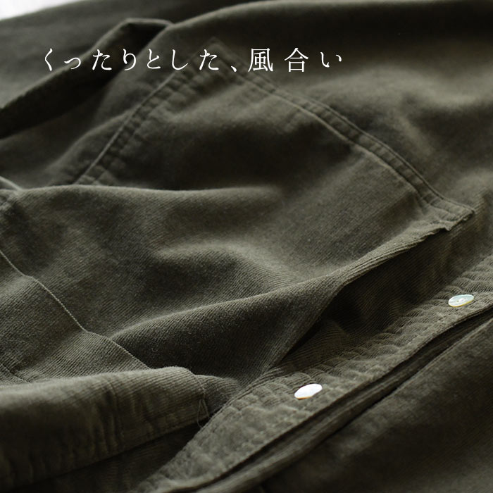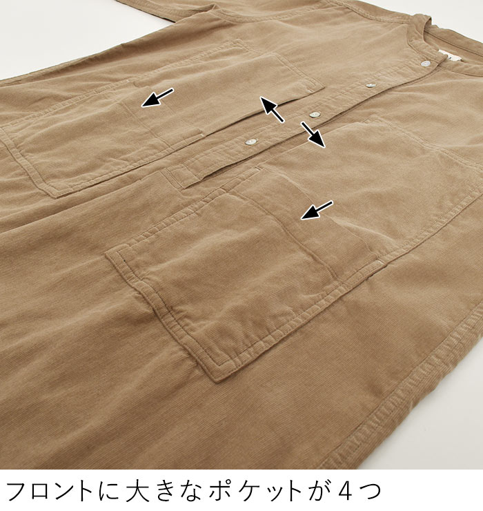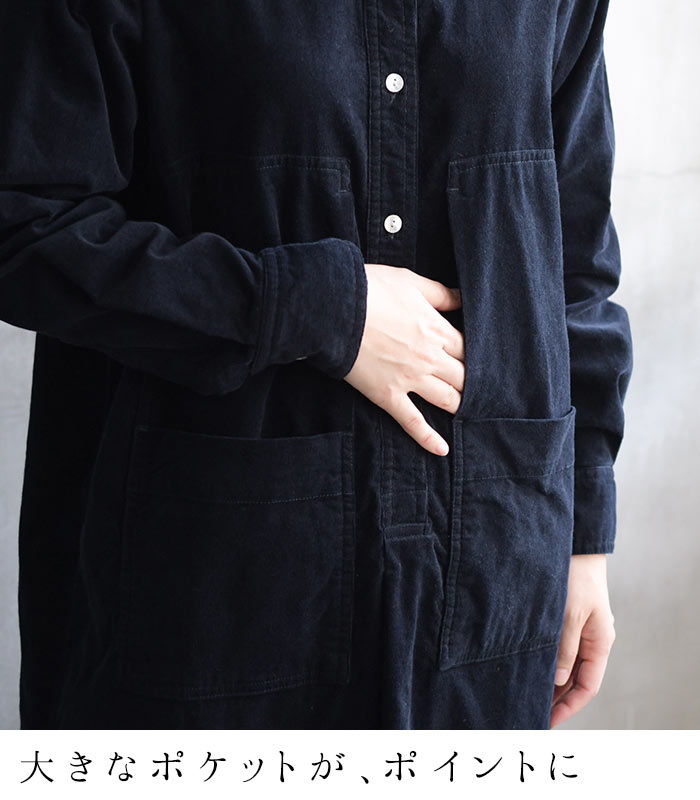 M〜3L コーデュロイ シャツワンピース 長袖 レディース ワイドポケット 綿100%/着後レビューでクーポン☆ ナチュラル カジュアル ゆったり 体型カバー エコロコ e+ Ms,Ls,LL,3L, / 秋冬 秋服 大きいサイズ 30代 40代 50代 24AW0927R,
