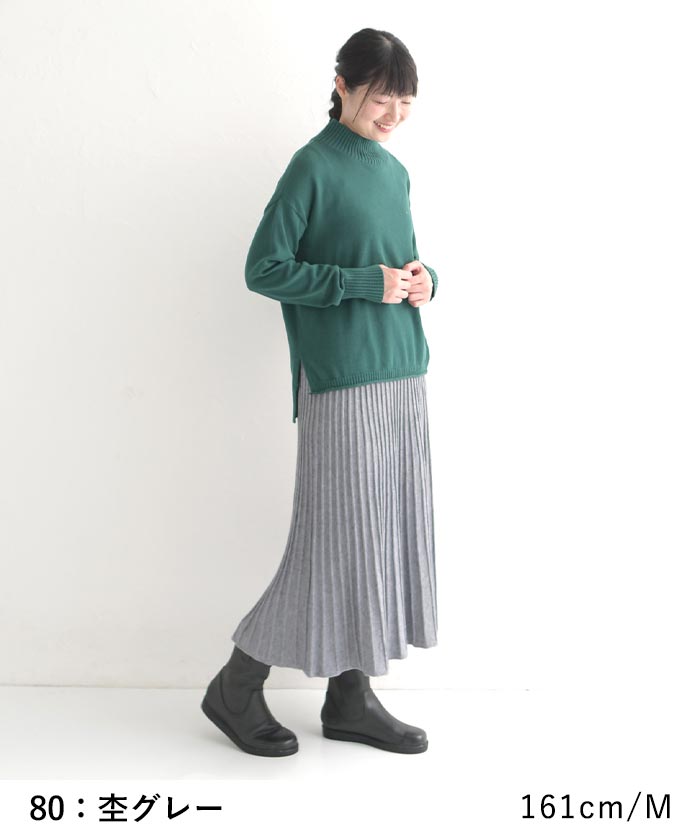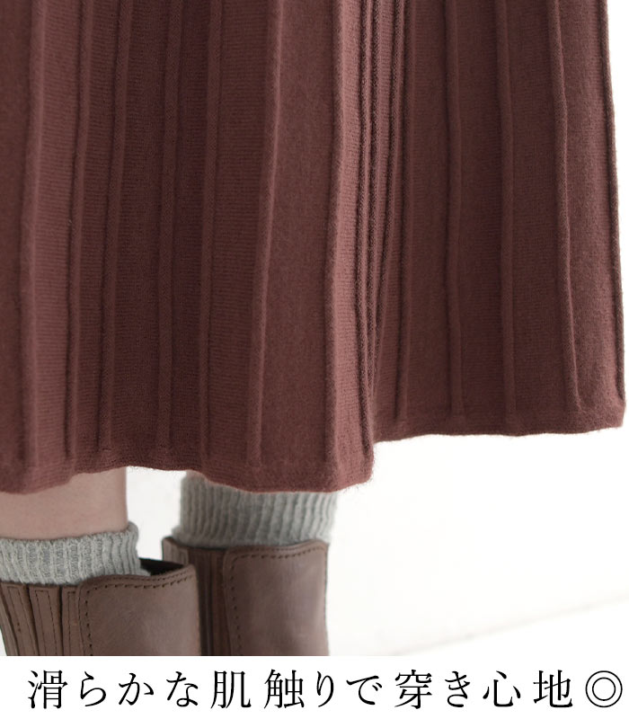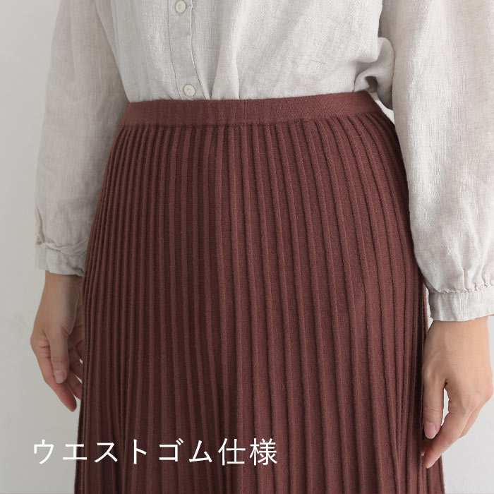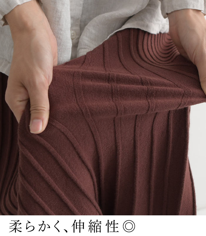 ニットスカート リブ ロング丈 レディース 12G天竺 フレア ロングスカート/ カジュアル Aライン プリーツ風 暖か あたたか あったか 暖かい ウエストゴム ボトムス エコロコ sel, Ms,Ls, / 秋冬 30代 40代 50代 24AW1004R,