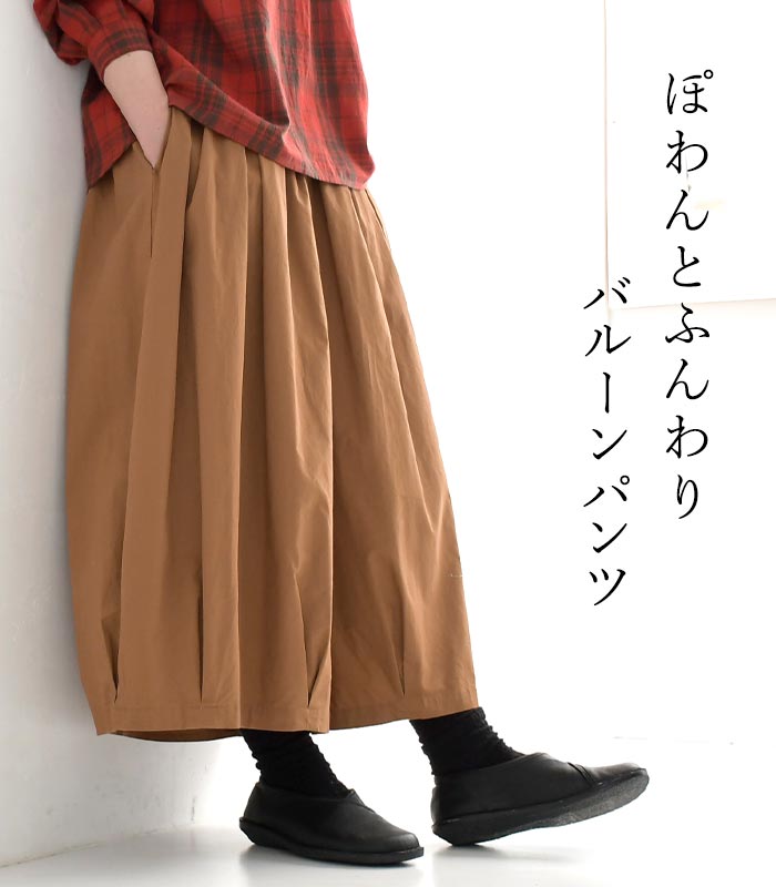 M〜3L バルーンパンツ サーカスパンツ ボールパンツ レディース D*g*y dgy 綿100%/ ナチュラル カジュアル コットンツイル タック フレアパンツ ゆったり ウエストゴム 体型カバー ボトムス エコロコ sel, Ms,Ls,LL, 3L,/ 大きいサイズ 春 秋 冬 24AW0906R,