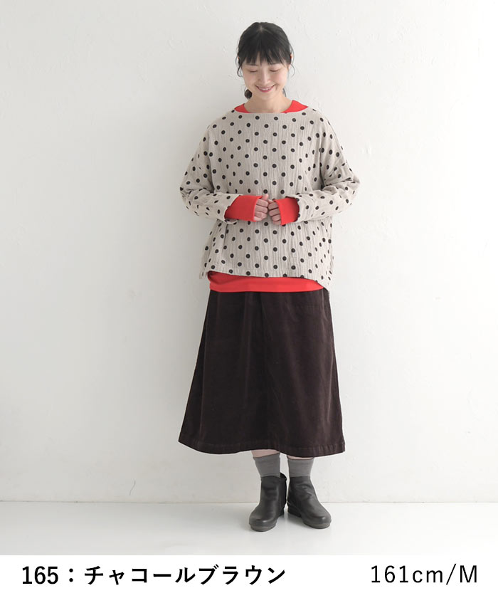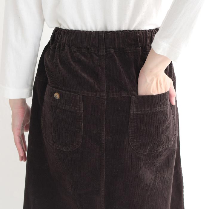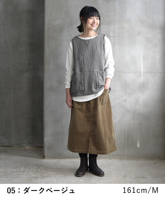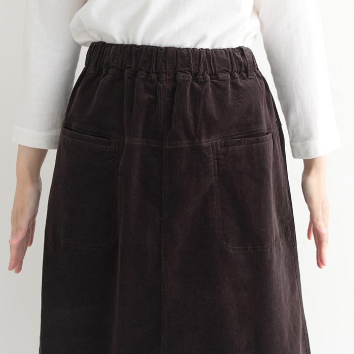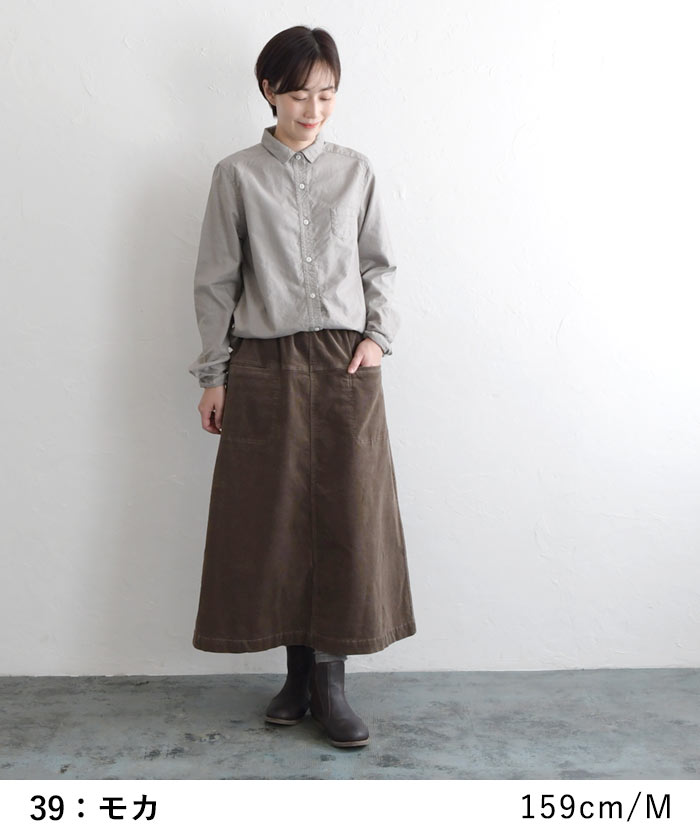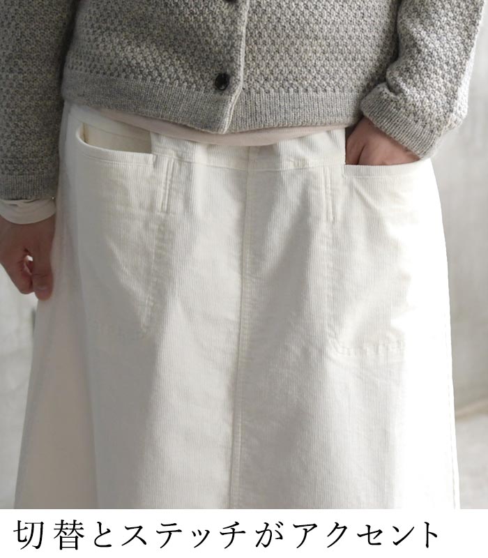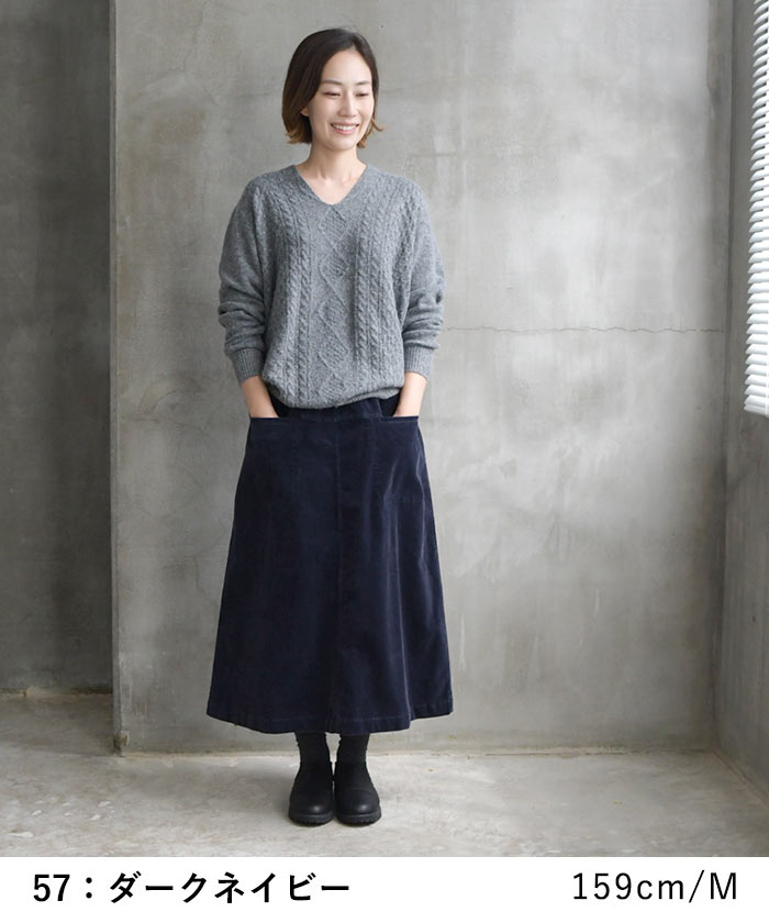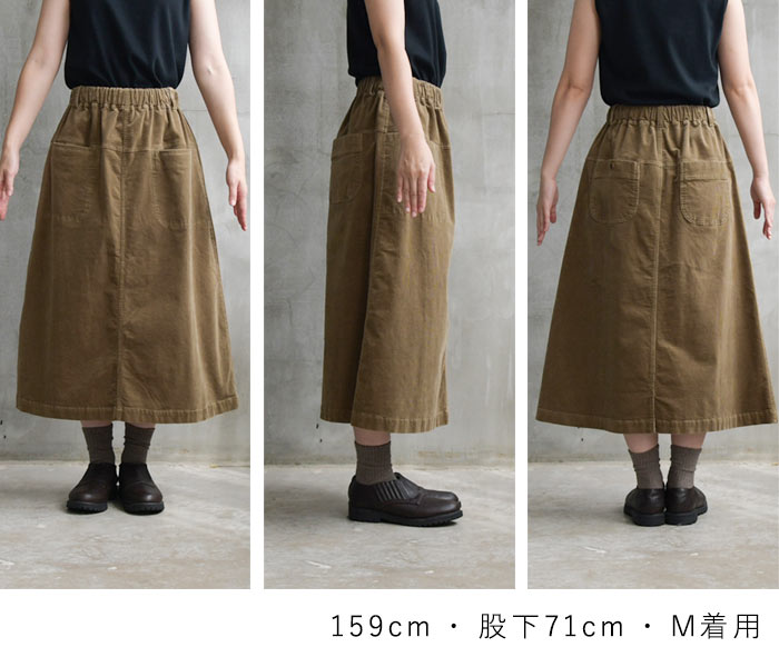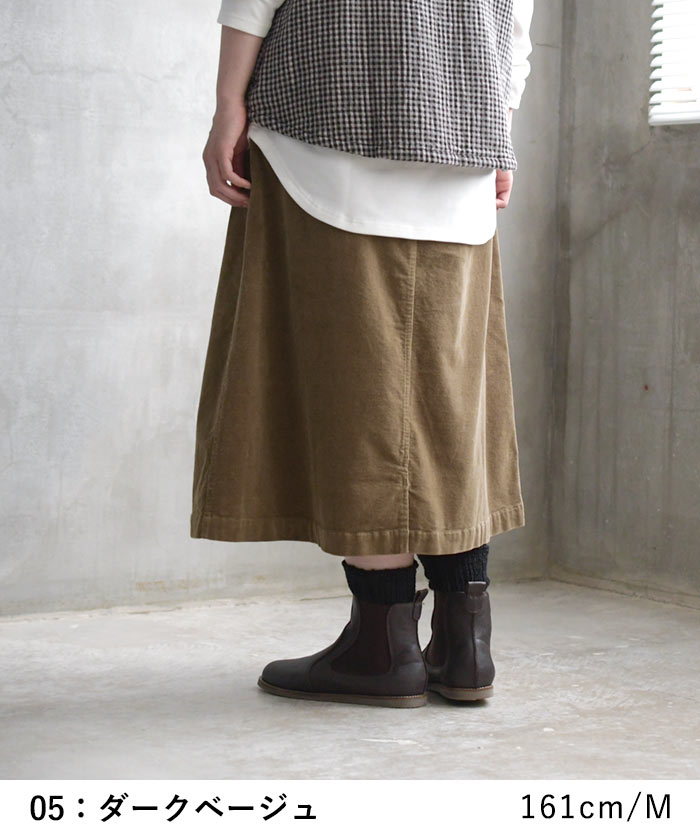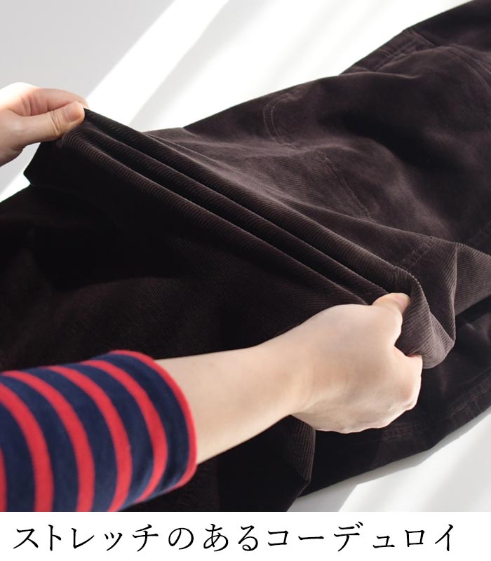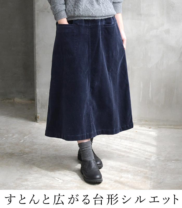 M〜3L 台形スカート ロング レディース ストレッチコーデュロイ 綿/着後レビューでクーポン☆ カジュアル ナチュラル コットン フレア ゆったり エコロコ e+ Ms,Ls,LL,3L, / レディース スカート 大きいサイズ 30代 40代 50代 24AW0919R,
