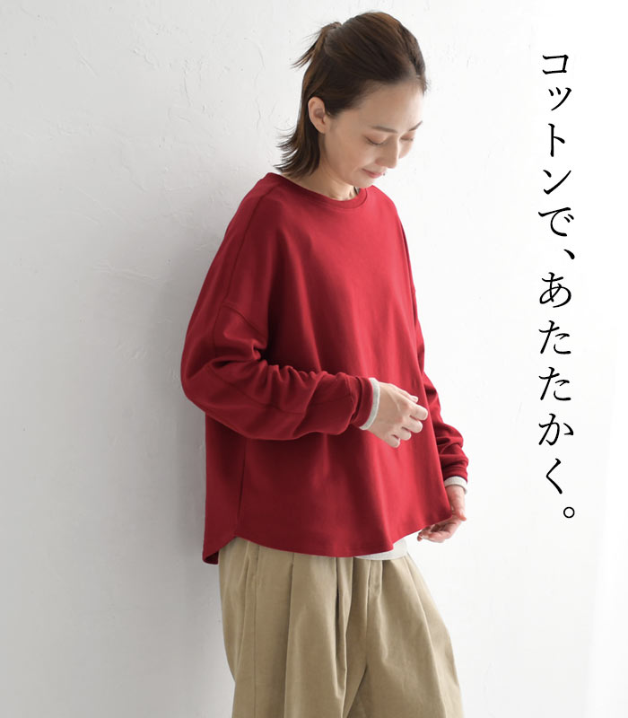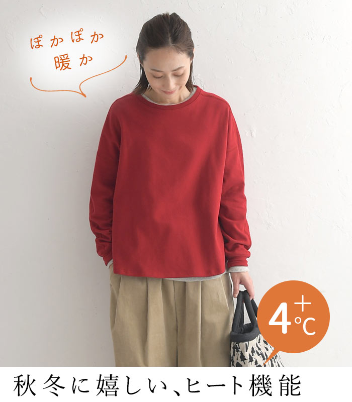M〜3L プルオーバー スウェット トレーナー カットソー あったか レディース 裏起毛 綿/着後レビューでクーポン☆ カジュアル 暖かい 長袖 トップス エコロコ e+ Ms,Ls,LL,3L,/秋 冬 大きいサイズ 24AW0913R,