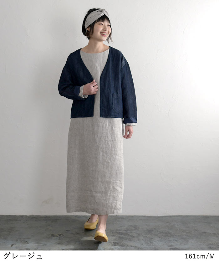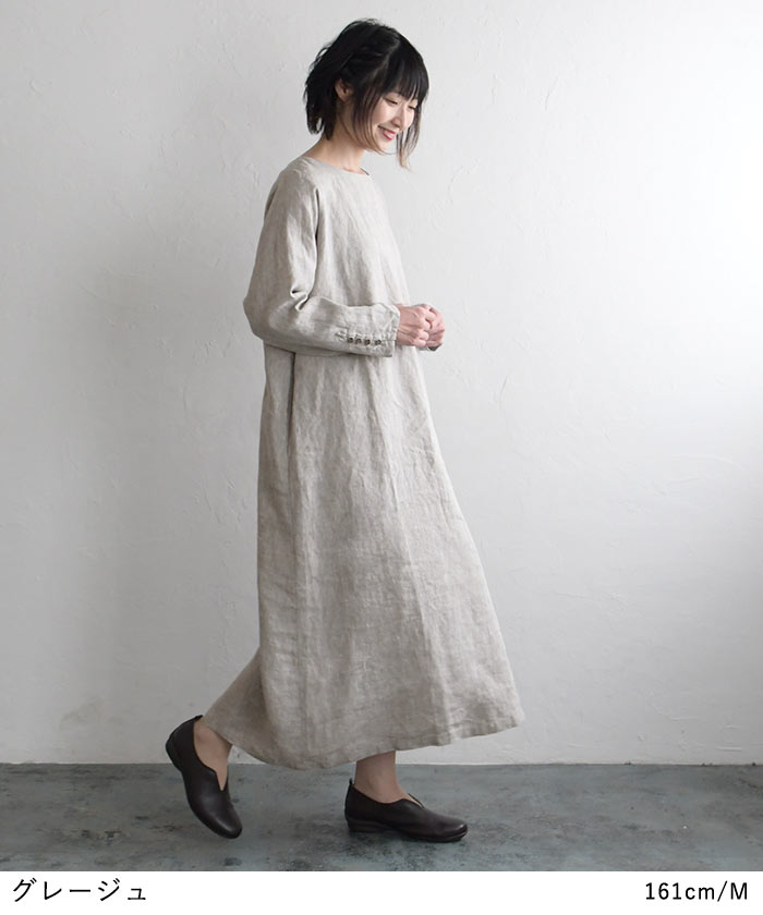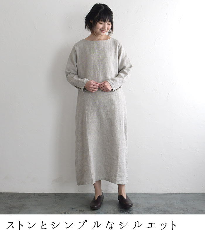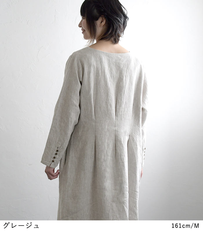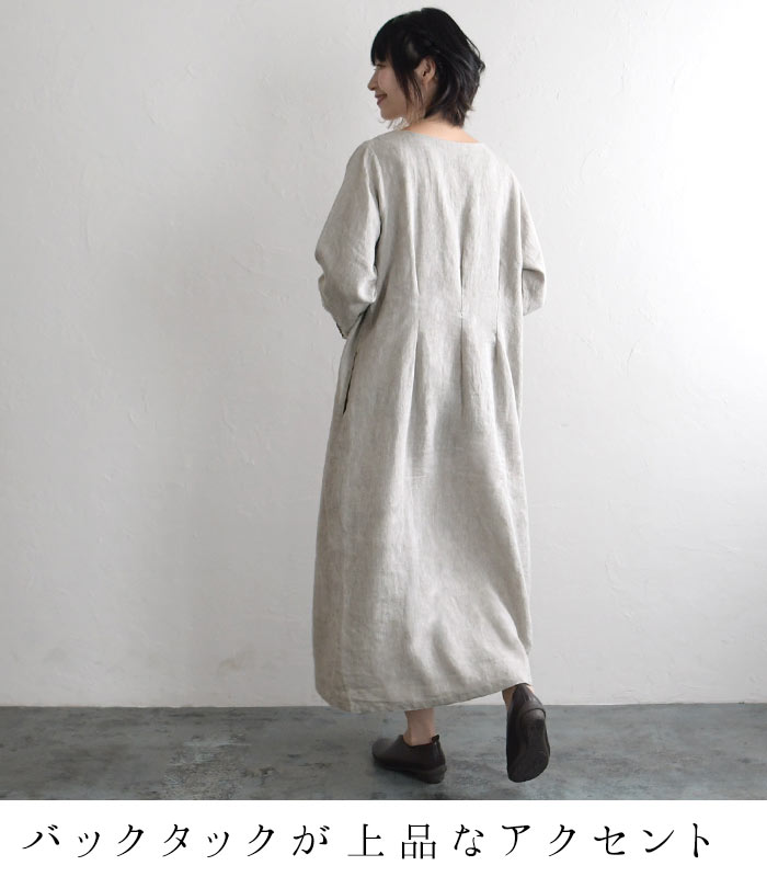 オリジナル バックタック ワンピース 9番手 ヴィンテージリネン M〜3L 麻100%/着後レビューでクーポン☆ セレモニー オケージョン ナチュラル 卒業式 フォーマル レディース エコロコ e+ Ms,Ls,LL,3L,/大きいサイズ 30代 40代 50代 24SS1201R,