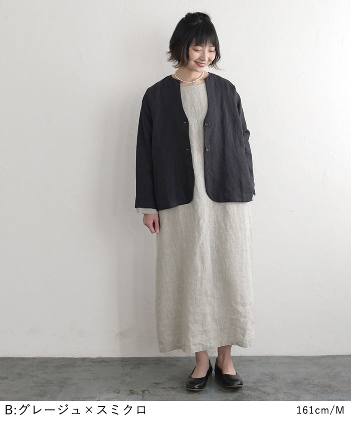 オリジナル ジャケット ワンピース セットアップ 9番手リネン M~3L 麻100%/ナチュラル フォーマル セレモニー ゆったり 卒業式 レディース エコロコ e+ Ms,Ls,LL,3L,/オケージョン 大きいサイズ 30代 40代 50代 24SS1201R,