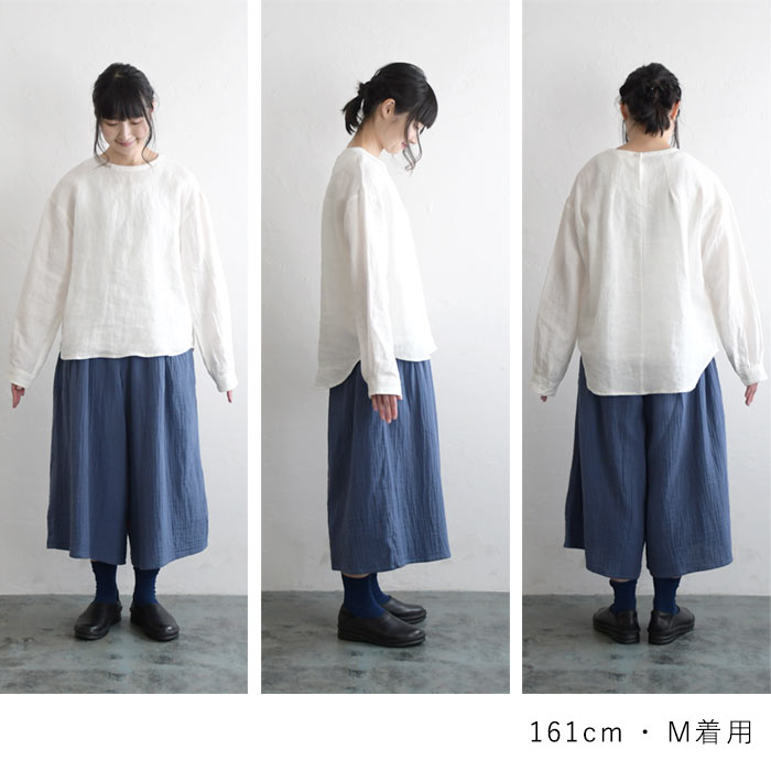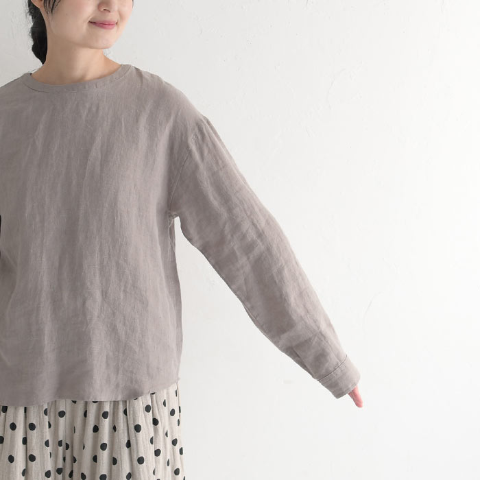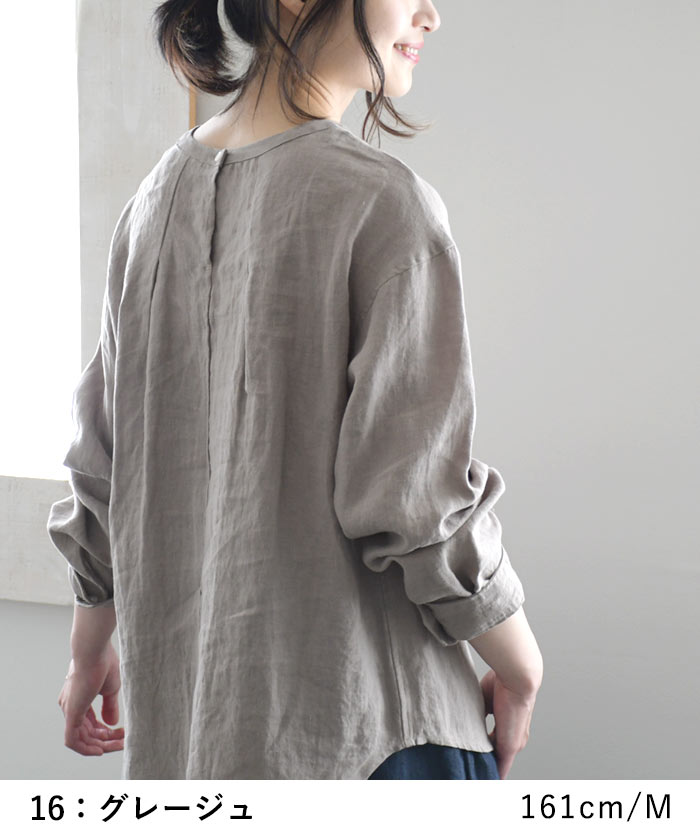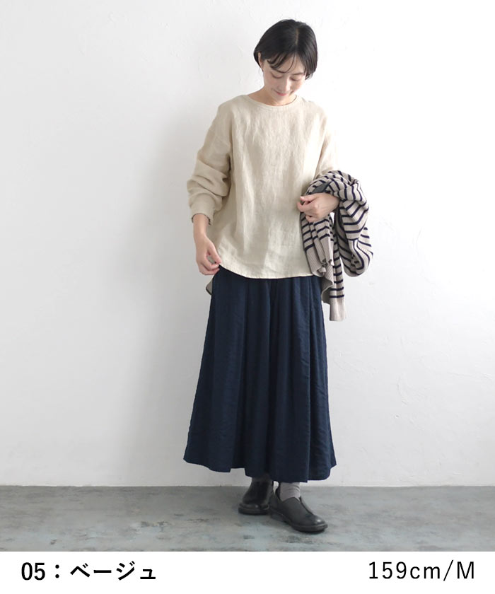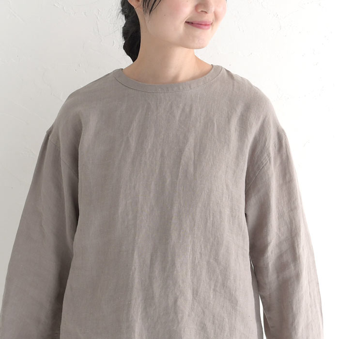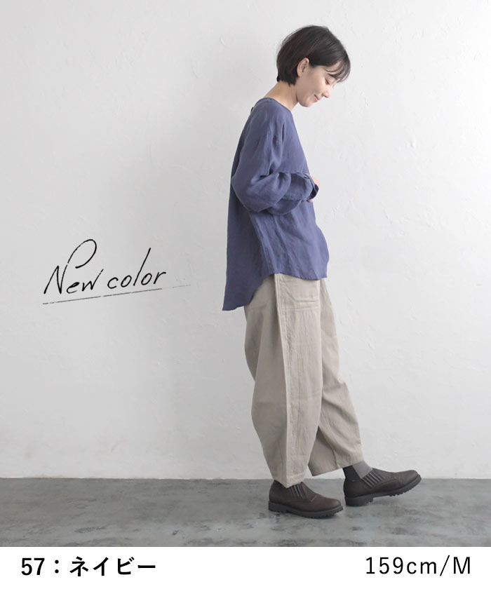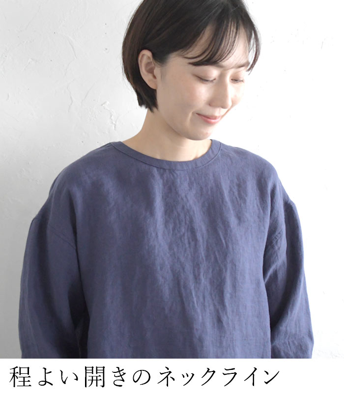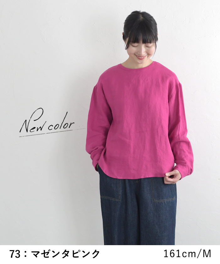 オリジナル リネン100% シャツプルオーバー クルーネック M〜3L/着後レビューでクーポン☆ カジュアル ナチュラル 麻 ゆったり レディース エコロコ トップス e+ Ms,Ls,LL,3L,/ リネン 大きいサイズ 秋冬 春夏 23AW0728R,