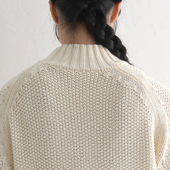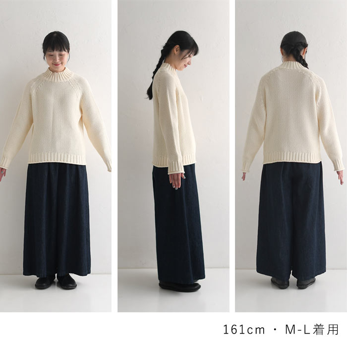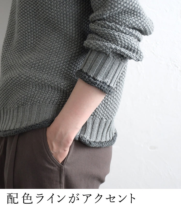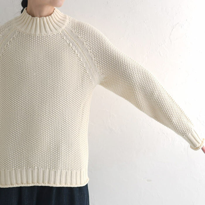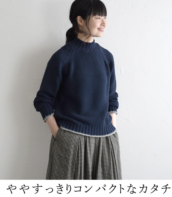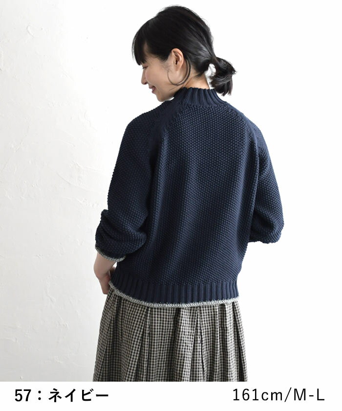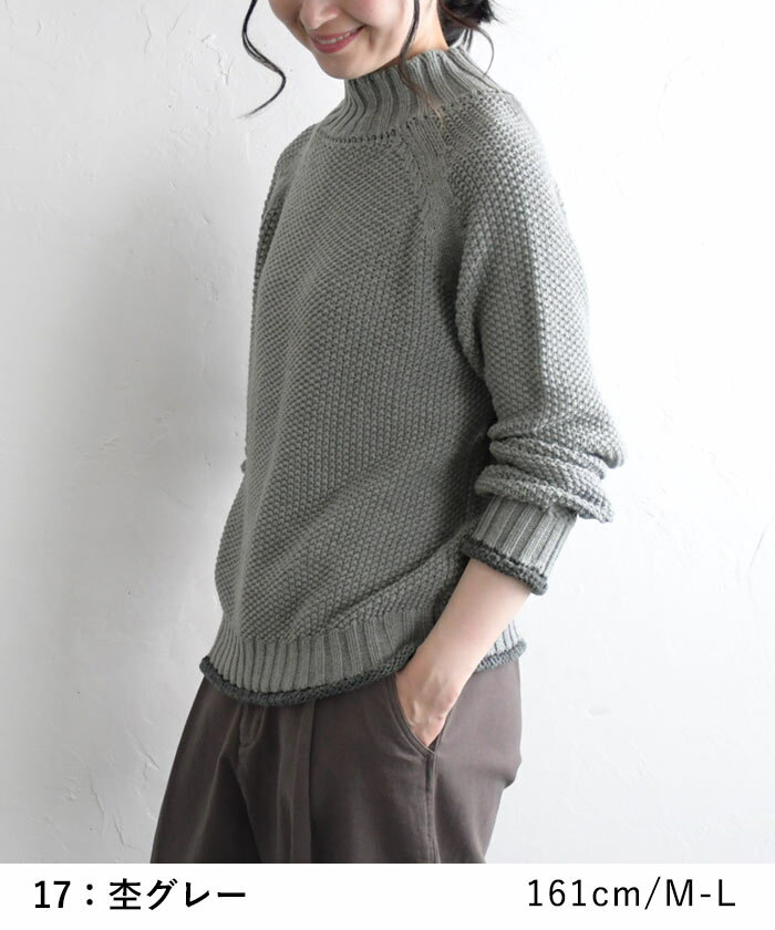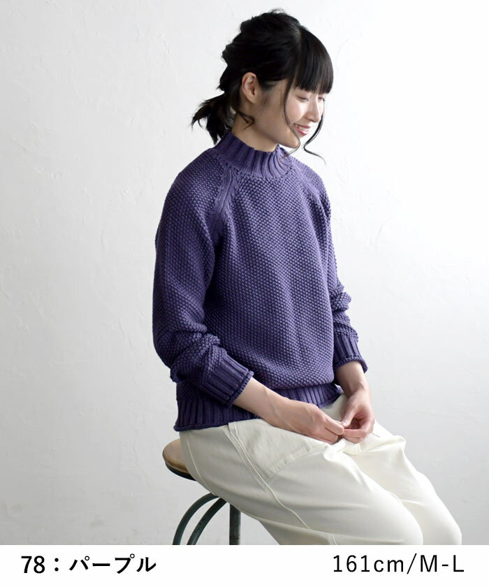 M〜3L ニット セーター 長袖 レディース 綿ニット プルオーバー ハイネック ラグラン 綿100%/ 着後レビューでクーポン☆ カジュアル ナチュラル 鹿の子 エコロコ 大きいサイズ トップス e+ Ms,Ls,LL,3L,/秋冬 春 秋服 24AW0919R,