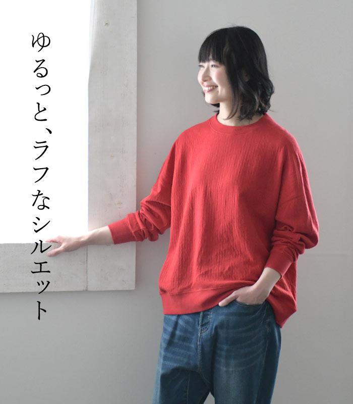 M~3L オリジナル プルオーバー コットン接結 綿100%/着後レビューでクーポン☆ カジュアル ナチュラル スウェット トレーナー 長袖 おしゃれ トップス レディース エコロコ e+ Ms,Ls,LL,3L,/大きめ 大きいサイズ 春 秋 冬 24SS0202R,