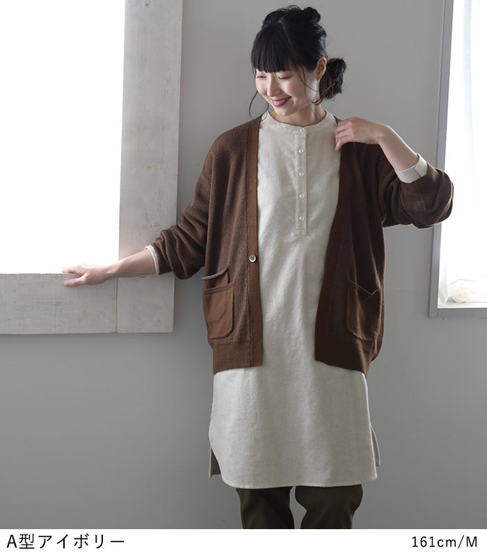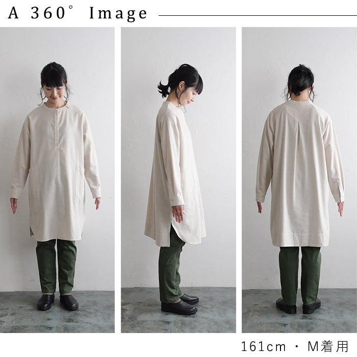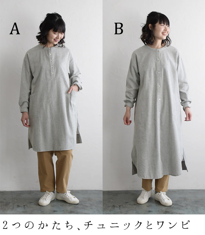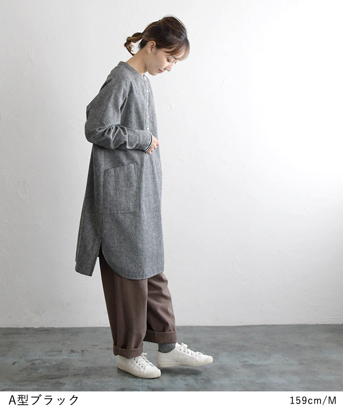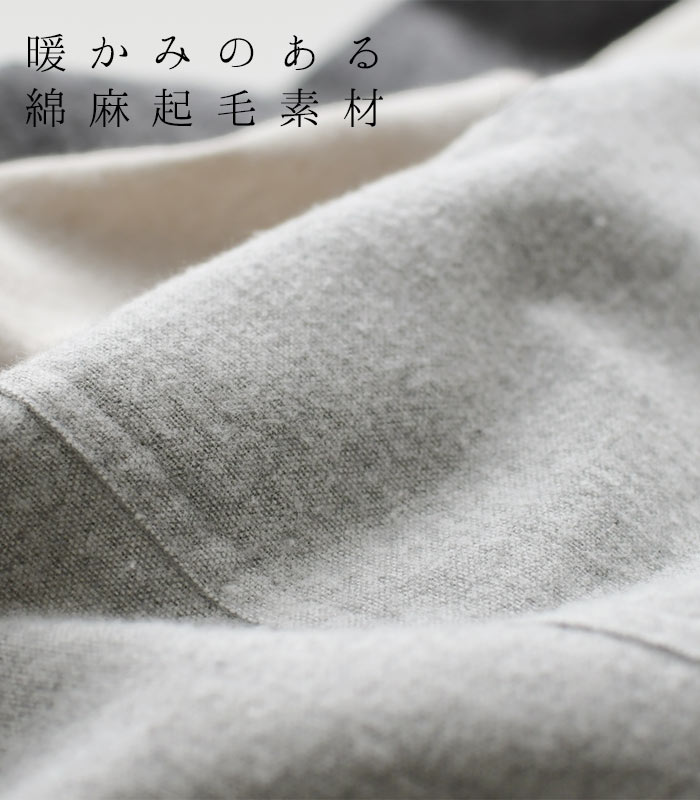M〜3L チュニック ワンピース 長袖 レディース 綿麻起毛/ 着後レビューでクーポン☆ カジュアル ナチュラル コットンリネン ゆったり 体型カバー エコロコ e+ Ms,Ls,LL,3L,/秋 冬 秋服 30代 40代 50代 大きいサイズ 24AW0927R,