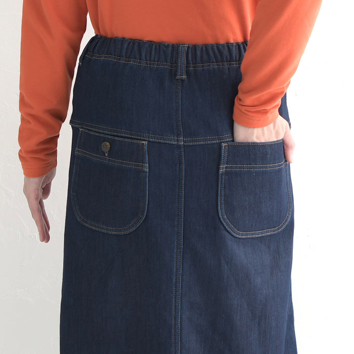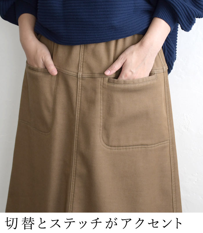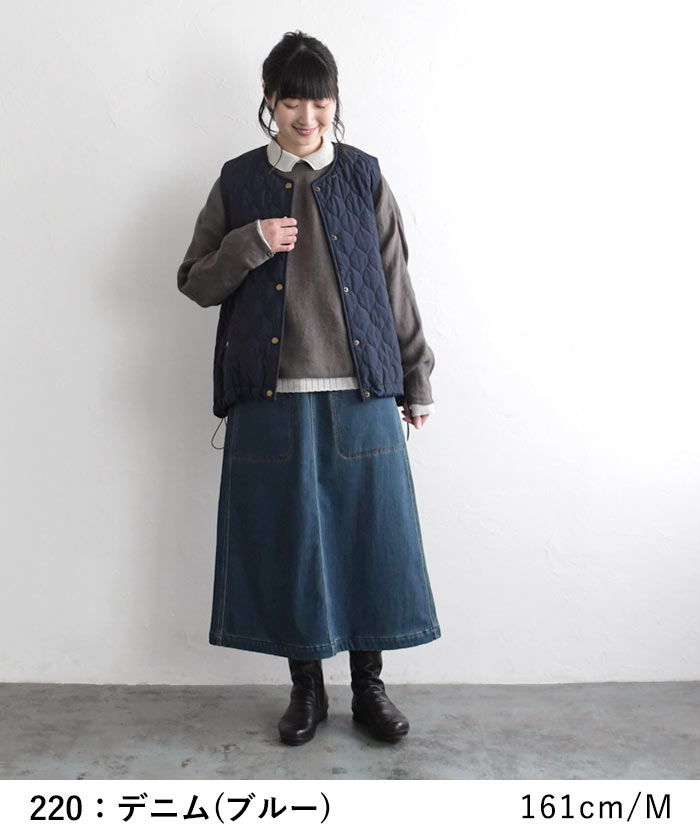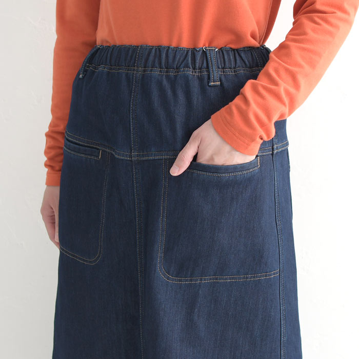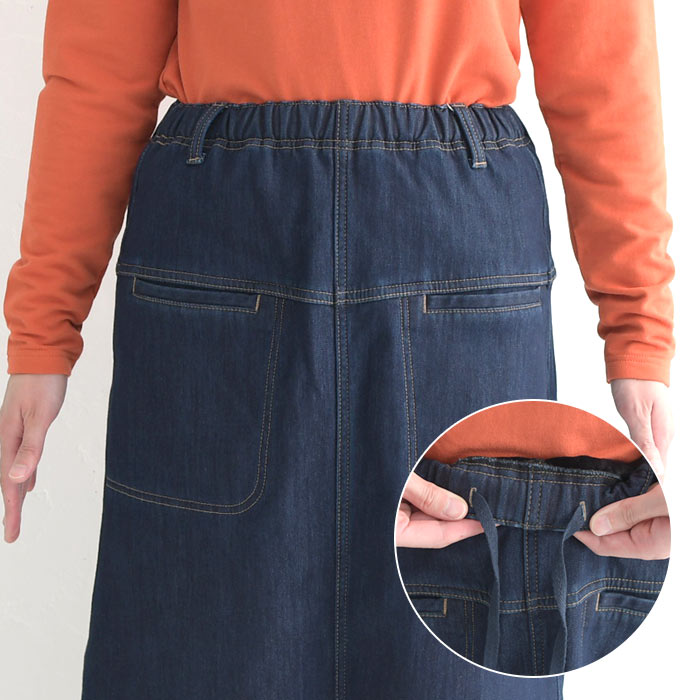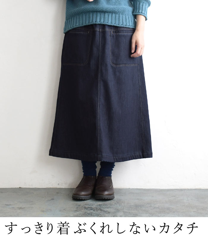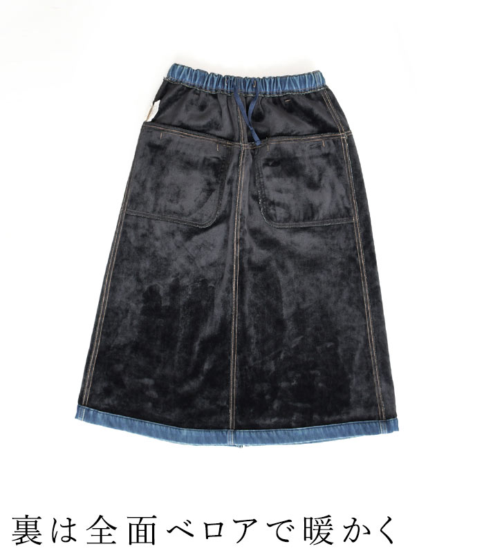 オリジナル あったか保湿 暖パン デニム スカート 台形スカート M〜3L/着後レビューでクーポン☆ 暖かい 保温 裏ベロア 無地 ボトムス レディース エコロコ e+ Ms,Ls,LL,3L,/-秋冬 ロング スカート 大きいサイズ 30代 40代 50代 23AW1020R,