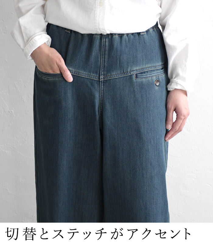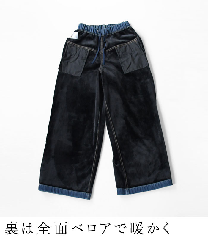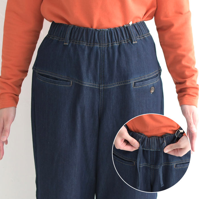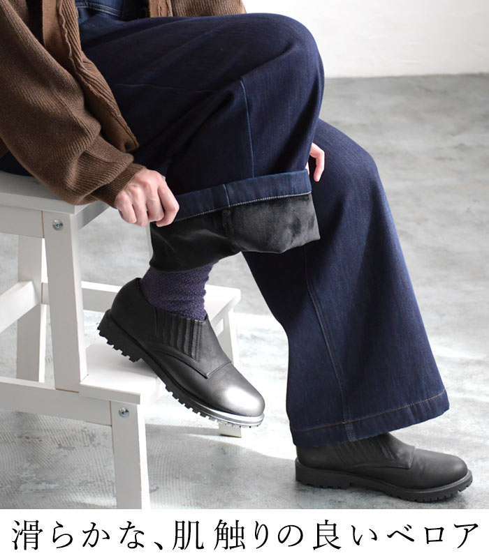 M〜3L パンツ ワイド デニム 裏起毛 暖パン ロング/ 着後レビューでクーポン☆ 暖かい あったか保湿 保温 裏ベロア ゆったり ボトムス エコロコ e+ Ms,Ls,LL,3L,/ 大きいサイズ 秋 冬 30代 40代 50代 24AW1018R,