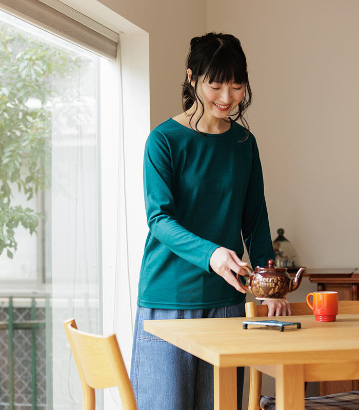 【メール便送料無料】日本製 インナー 長袖 メリノウール カットソー あったか 洗えるM〜3L/着後レビューでクーポン☆ クルー Tシャツ エコロコ Ms,Ls,LL,3L, レディース/SOCOCOTI 消臭 抗菌 春 秋冬 大きいサイズ 2320SS1216, 30代 40代 50代 ギフト プレゼント 贈り物