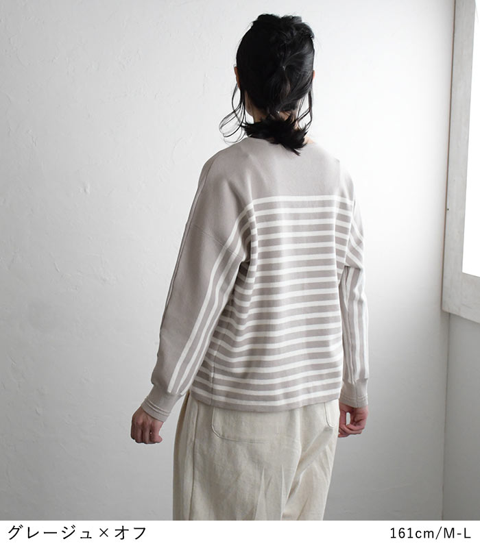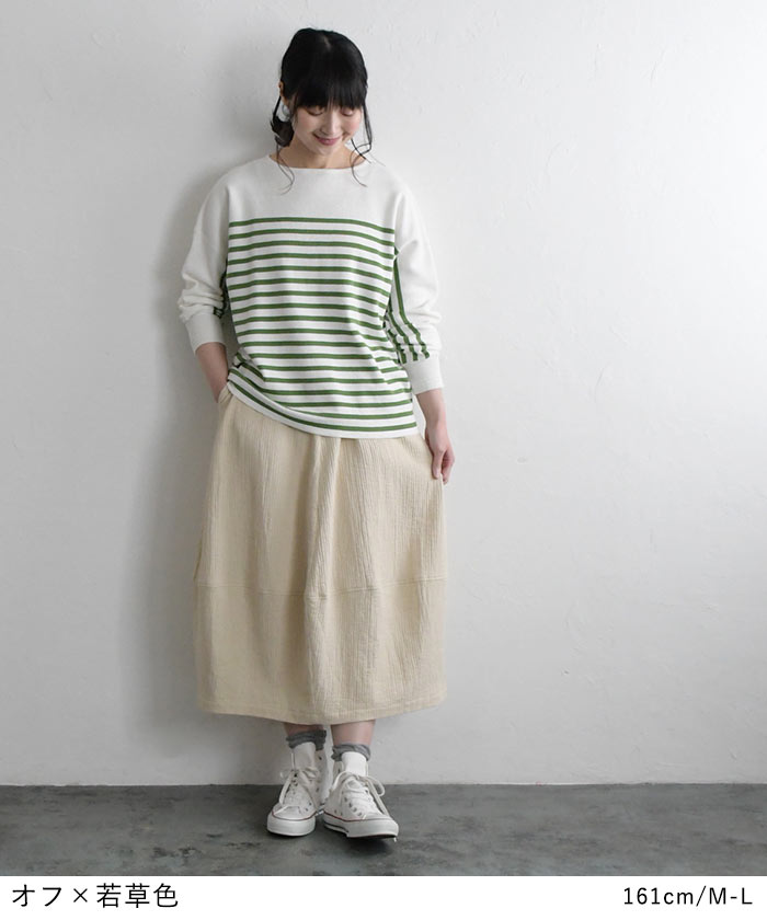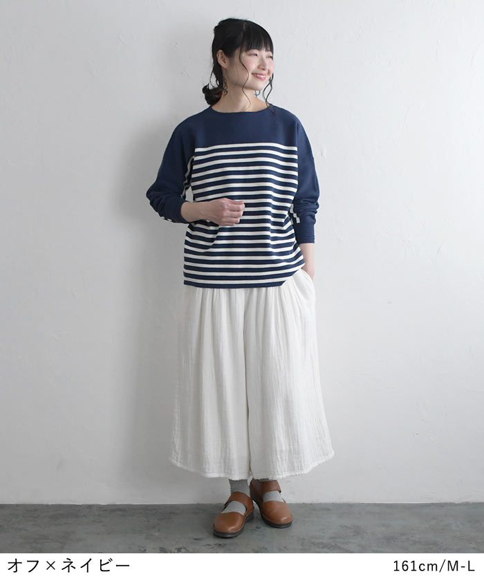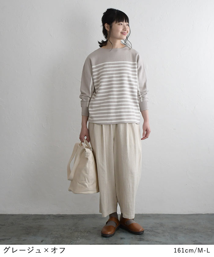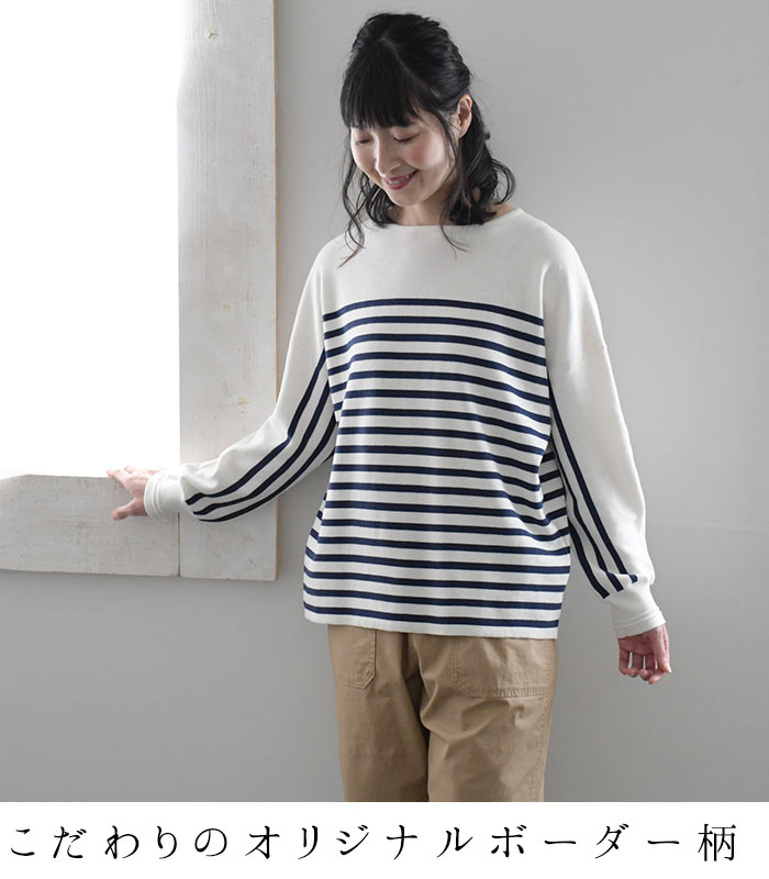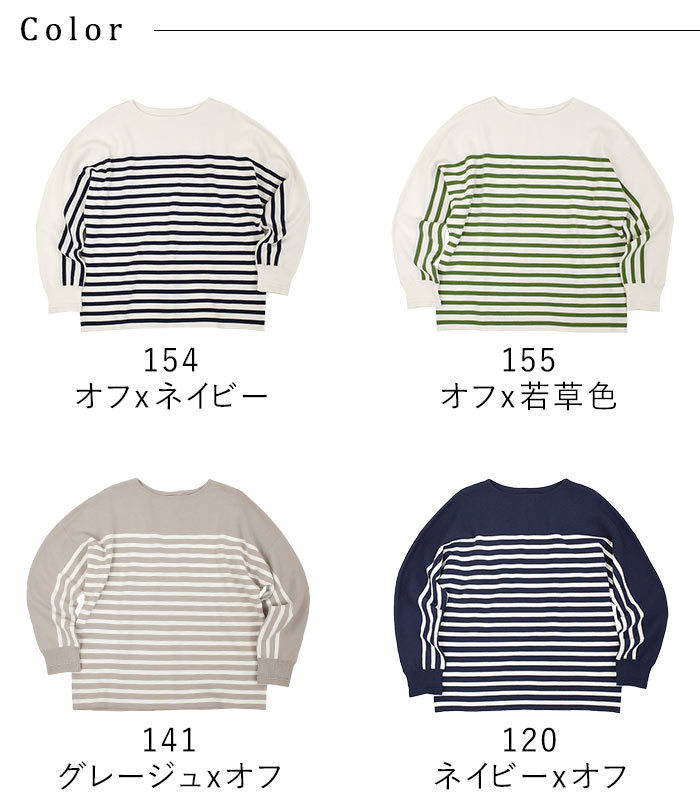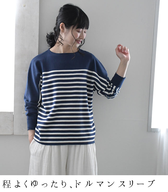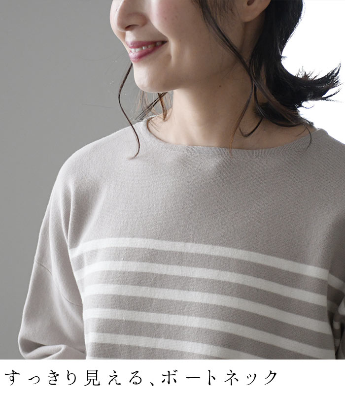 【タイムセール30%OFF】 ボーダーニット プルオーバー 肩落ち 14ゲージ ミラノ編み強撚 綿ニット /着後レビューでクーポン☆ 綿100% セーター カットソー トップス レディース e+ Ms,Ls,LL,3L, /大きいサイズ 春 秋 冬 2320SS0203, エコロコ, 30代 40代 50代