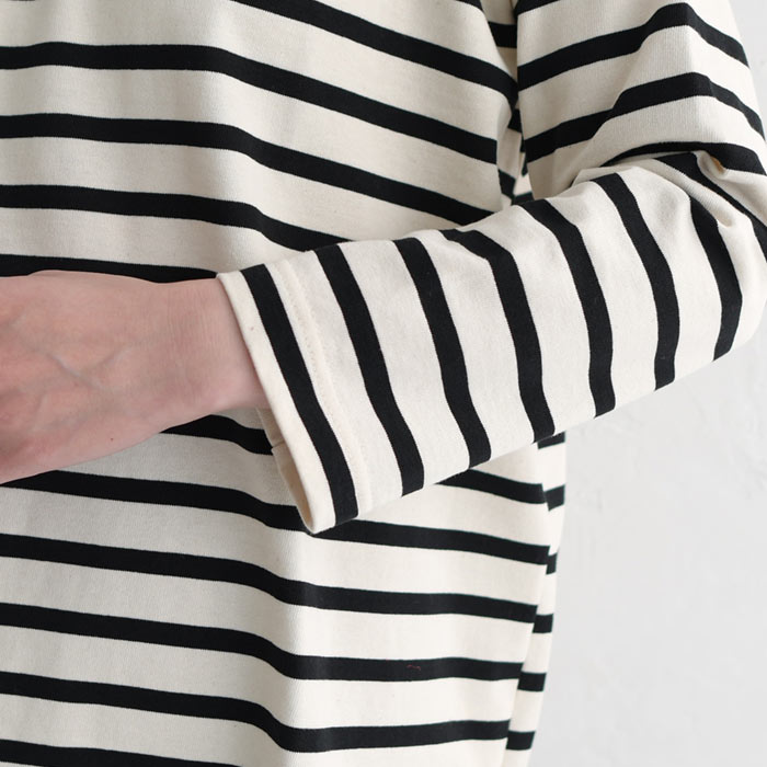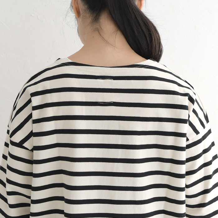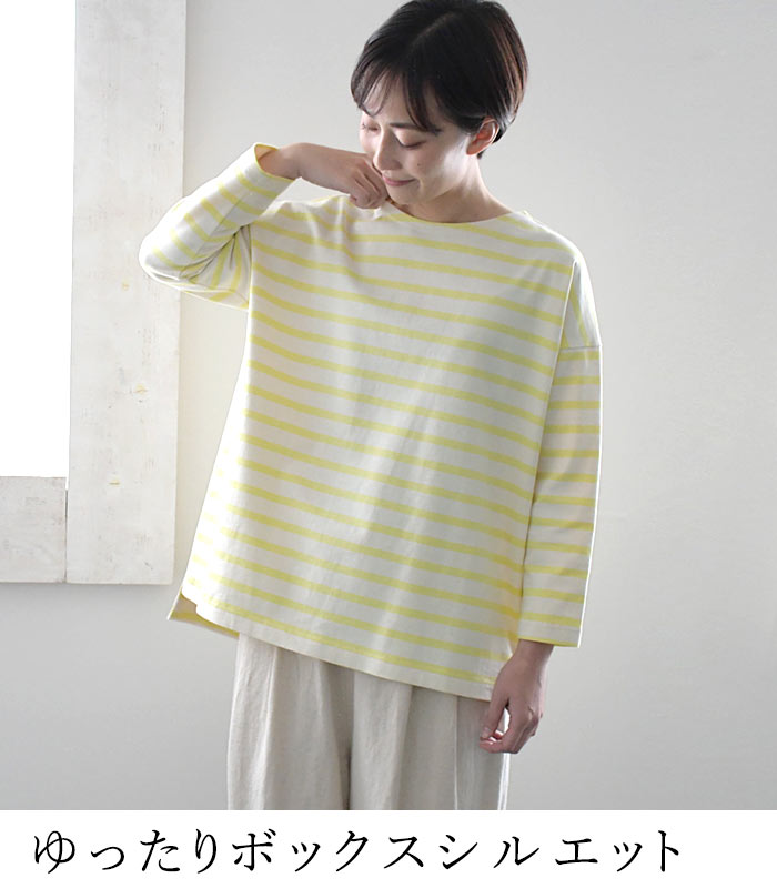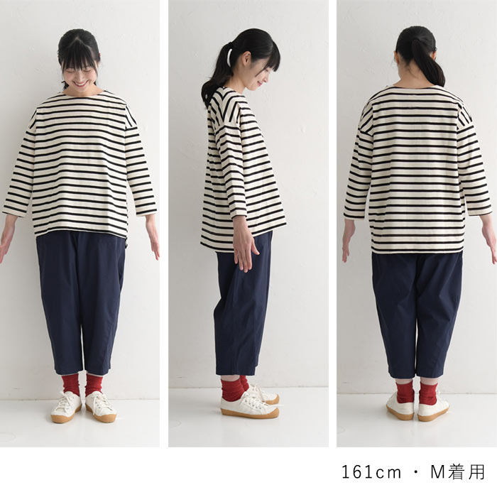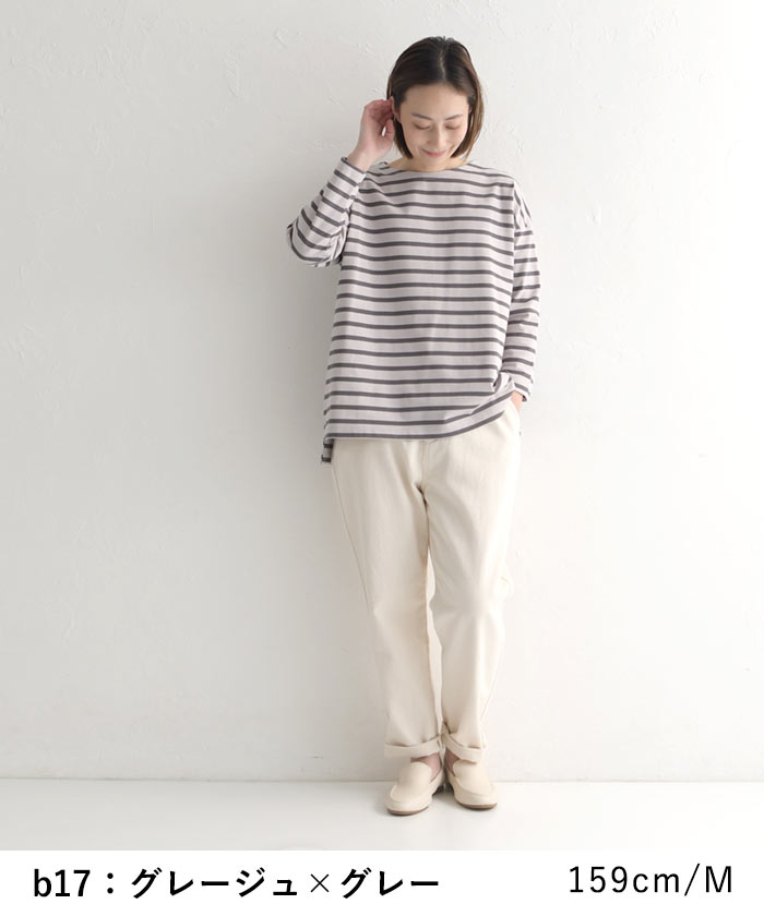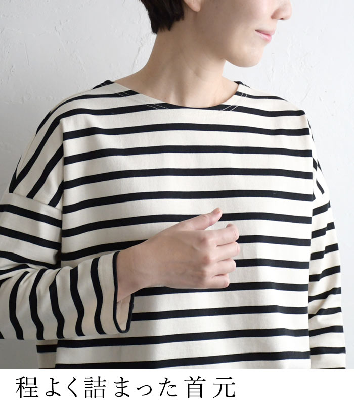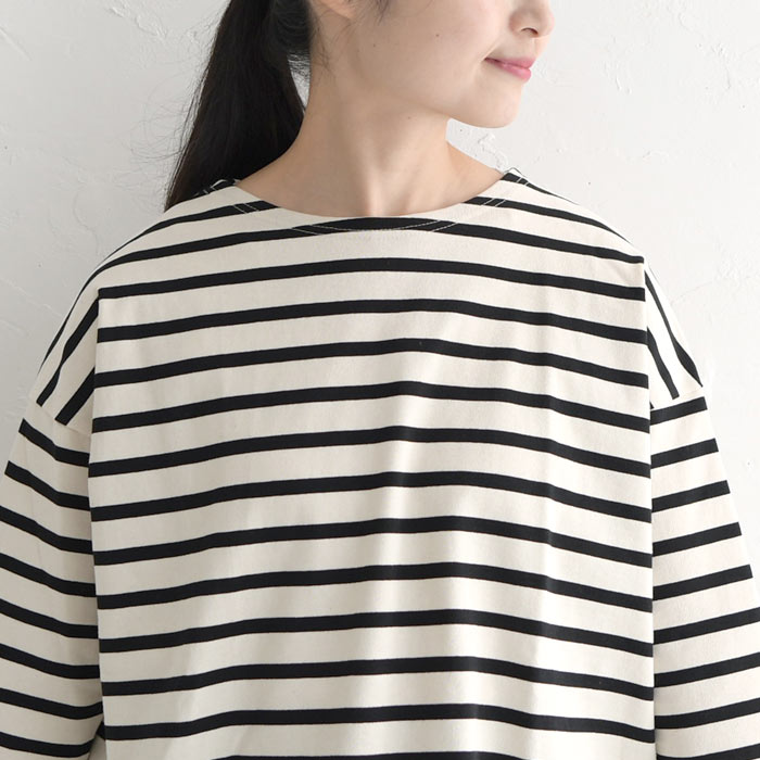 【9/2-9/16クーポンあり】M〜3L 日本製 綿100% ボーダー カットソー レディース コットン 8分丈/着後レビューでクーポン☆ トップス Tシャツ クルーネック プルオーバー ロンT ベーシック おしゃれ エコロコ e+ Ms,Ls,LL,3L,/大きめ 大きいサイズ 春 秋冬 秋服 24AW0830R,