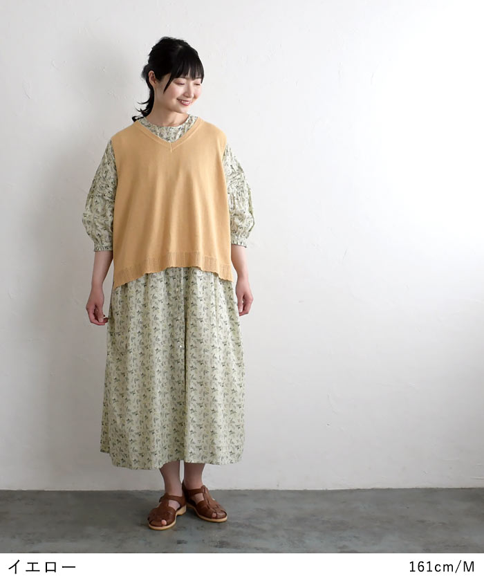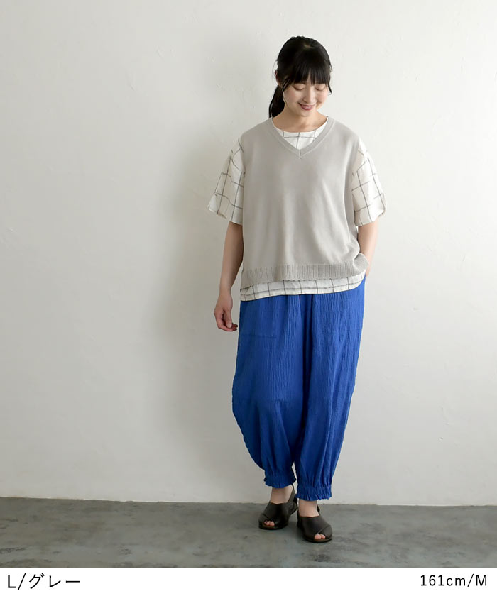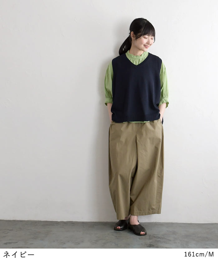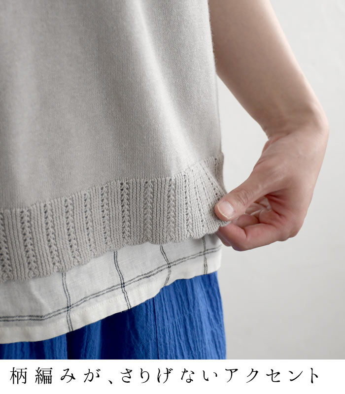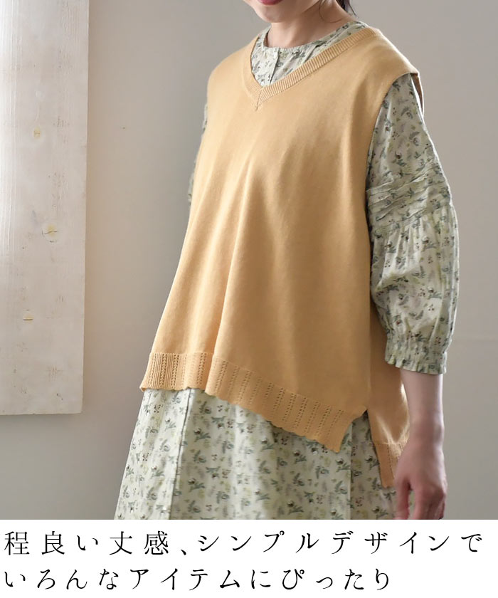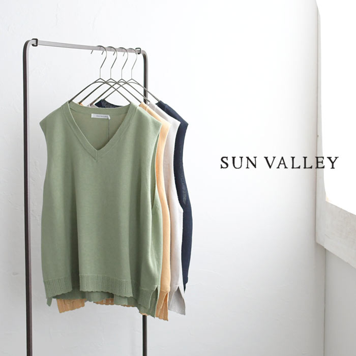 【セール!】 SUN VALLEY ニット ベスト ジレ Vネック 30番手 綿麻 天竺 トップス サンバレー/ノースリーブ コットン リネン シンプル ゆったり ナチュラル 体型カバー sel,/エコロコ 春夏 レディース sel, 2320SS0526 q0719, q5, a27,