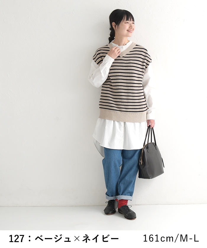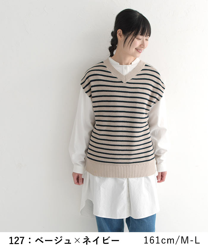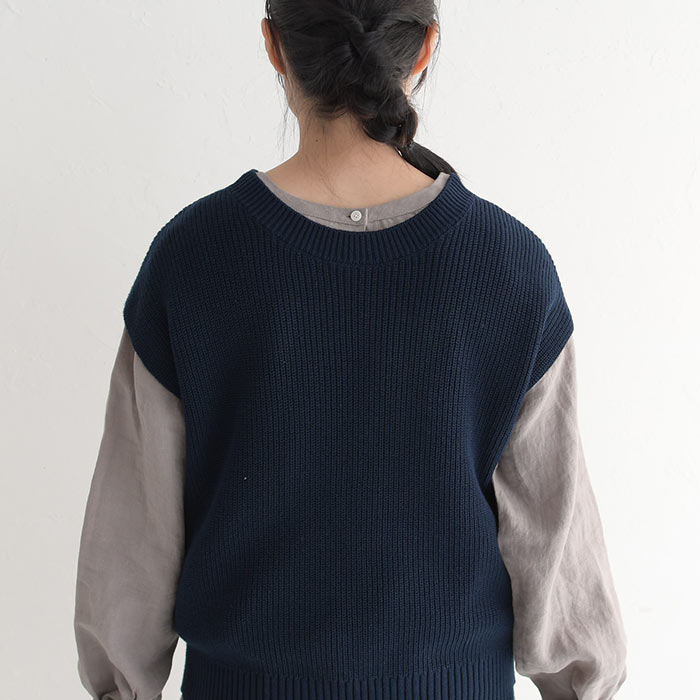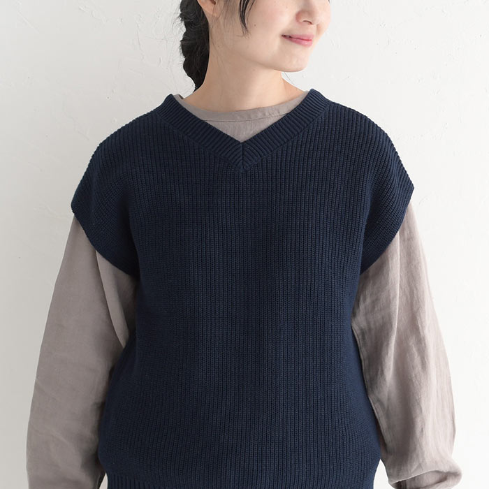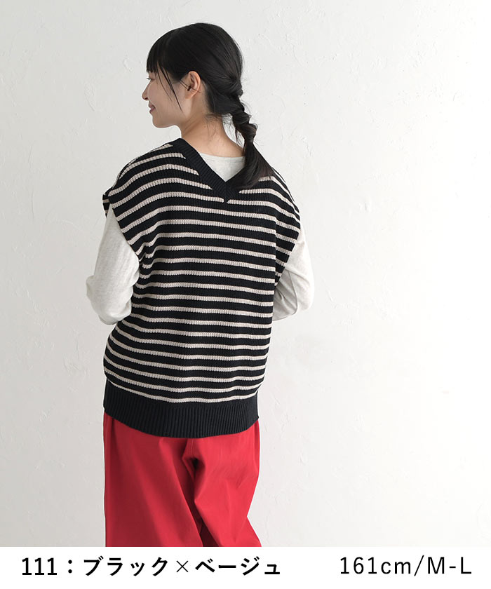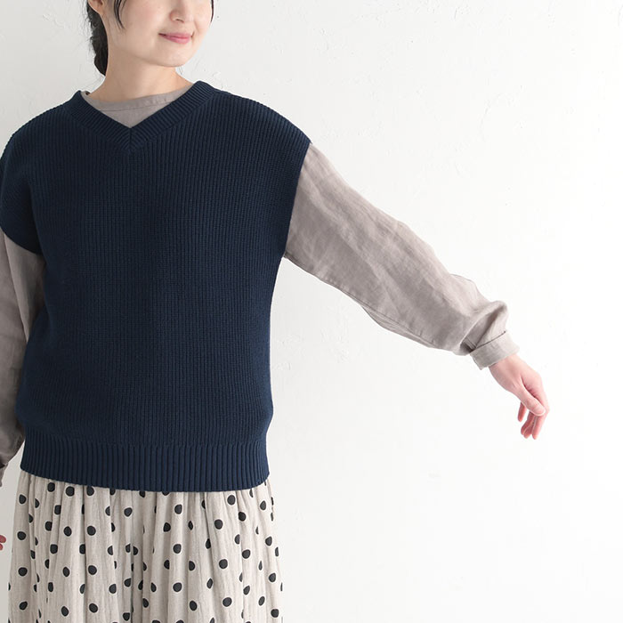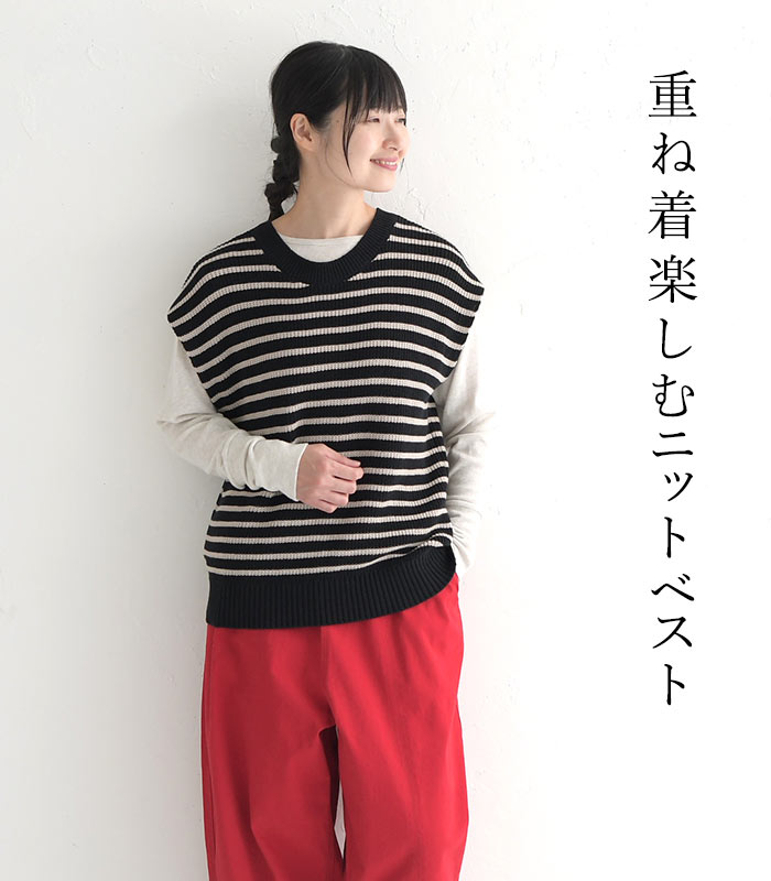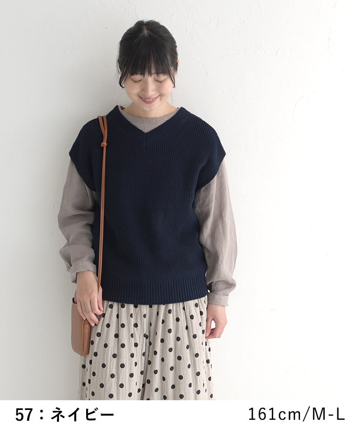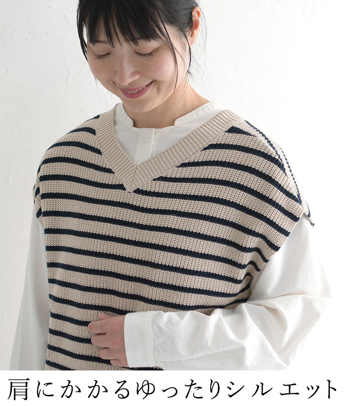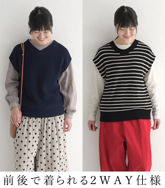 【5日限定 要エントリー P最大100%バック】 M〜3L ニットベスト 2WAY 綿100% オーバーサイズ/着後レビューでクーポン☆ カジュアル セーター 綿ニット 重ね着 トップス レディース エコロコ e+ Ms,Ls,LL,3L,/大きいサイズ 秋 冬 23AW0901,