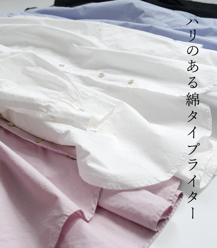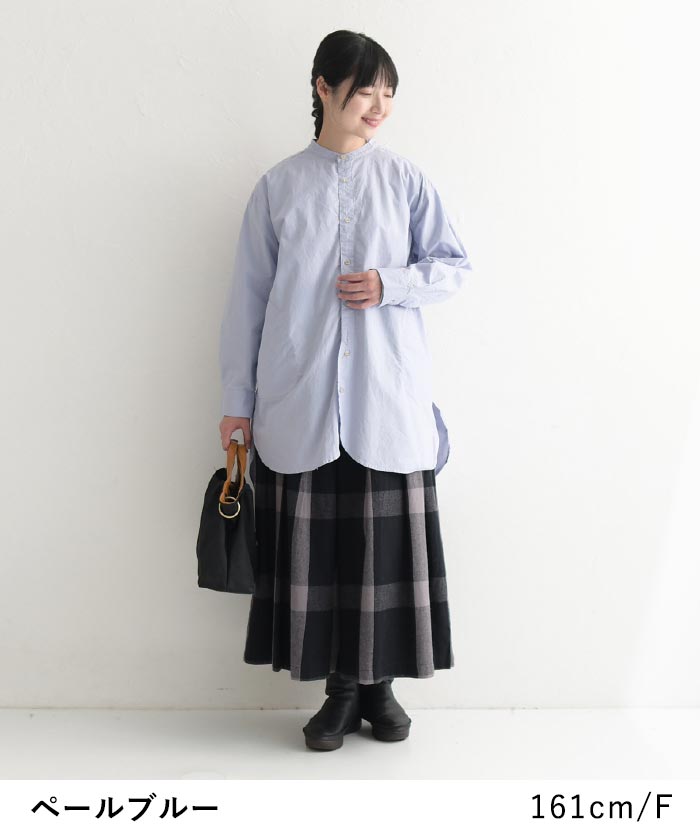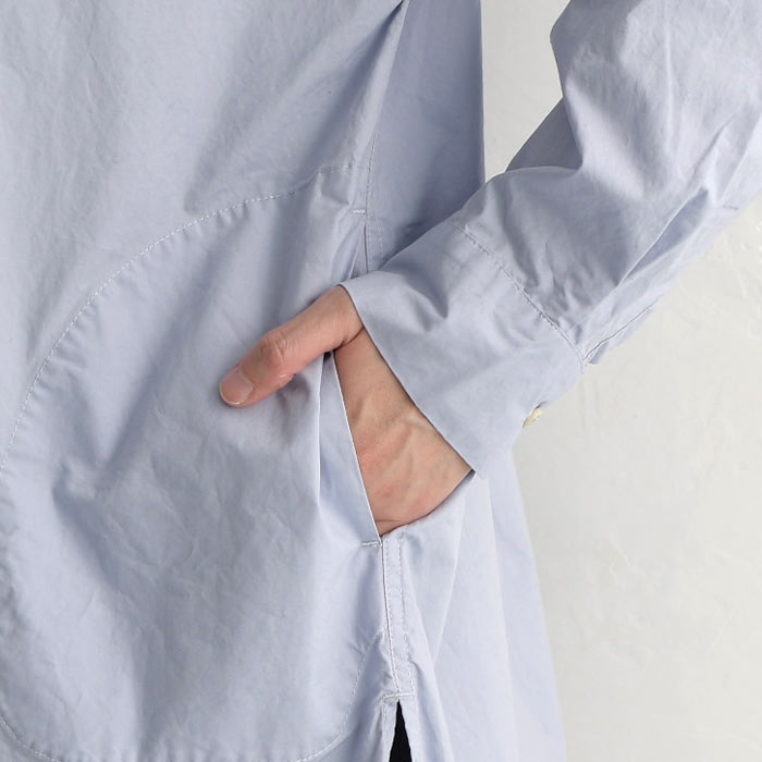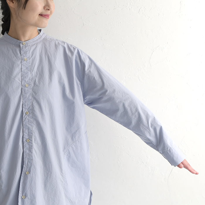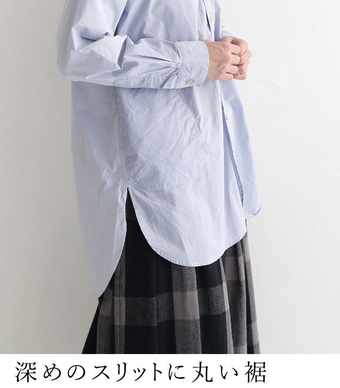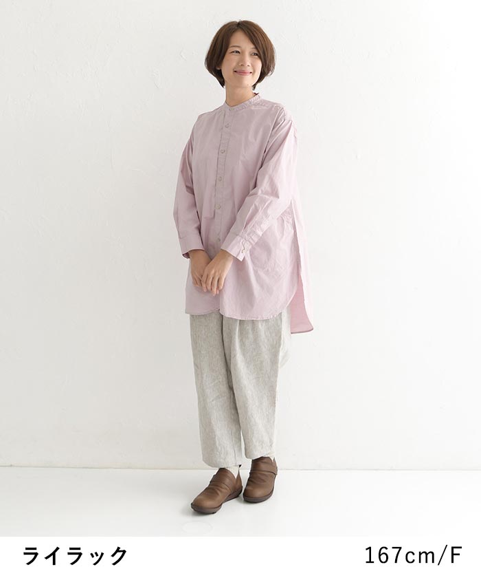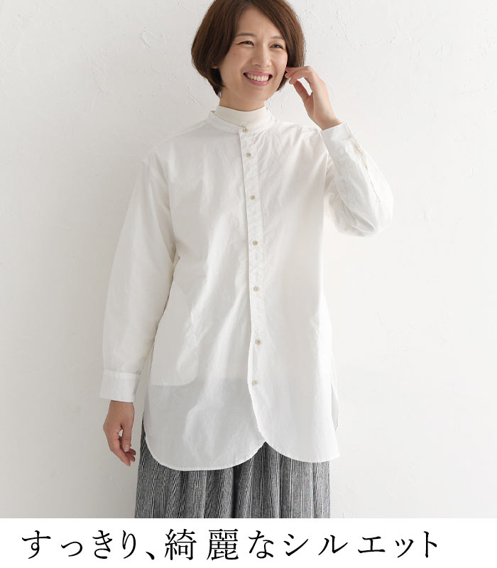 SO[ ] コットン40番手 タイプライター 裾ラウンド シャツチュニック 綿100%/カジュアル ナチュラル エスオー バンドカラー 長袖 ブラウス ゆったり 体型カバー レディース エコロコ sel, Ms,Ls,/春 秋 冬 30代 40代 50代 23AW1117,