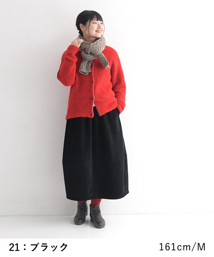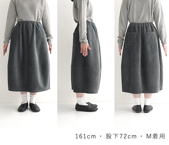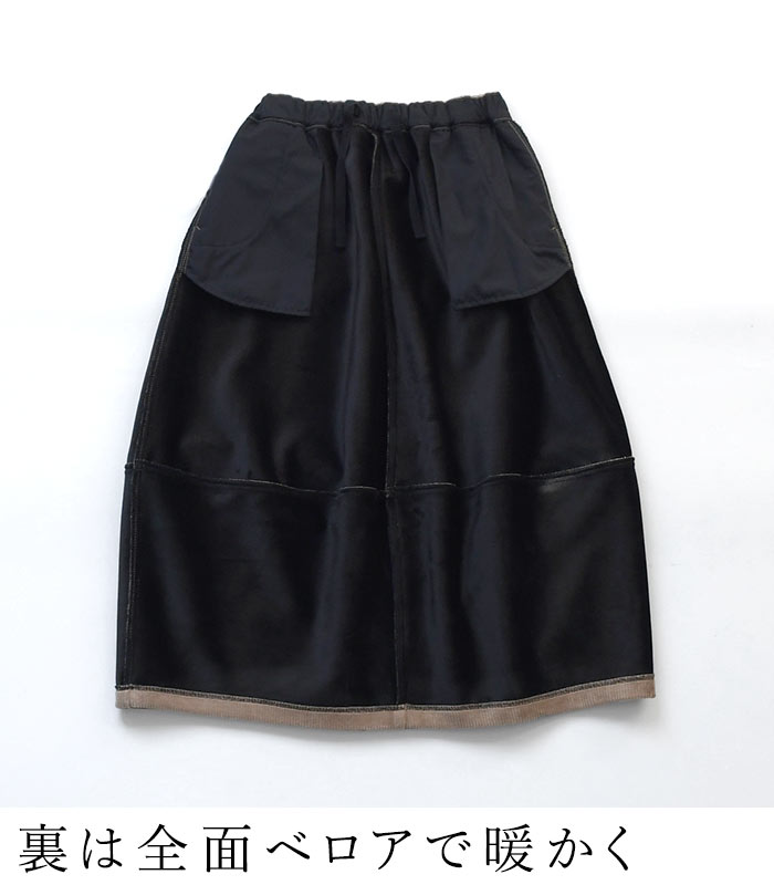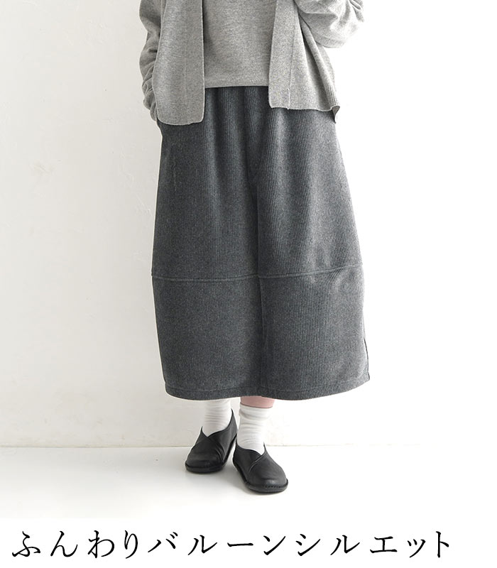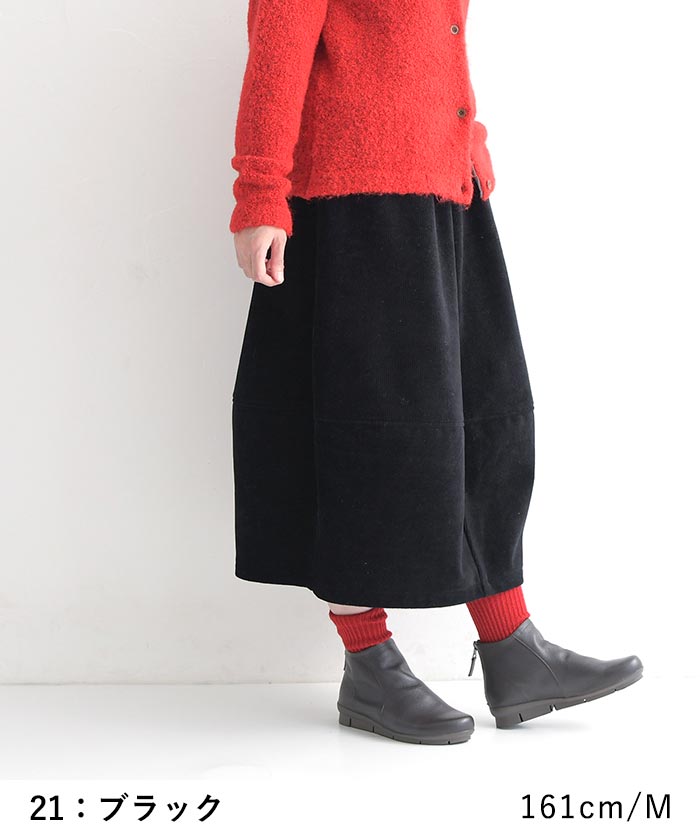 M〜3L バルーンスカート レディース 保湿発熱 裏ベロア コーデュロイ 綿 コットン/ 着後レビューでクーポン☆ カジュアル ナチュラル あったか 暖かい 防寒 大人可愛い エコロコ e+, Ms,Ls,LL,3L/秋 冬 大きいサイズ 24AW1108R, ギフト プレゼント 贈り物