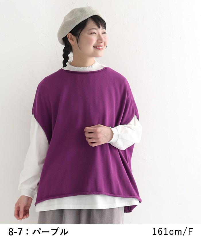 Bliss bunch ワイドベスト オーガニックコットン 天竺編み フレンチ袖 綿100%/カジュアル ナチュラル トップス プルオーバー 重ね着 ノースリーブ レディース エコロコ sel, Ms,Ls,/30代 40代 50代 春 秋 24SS0216, a27,