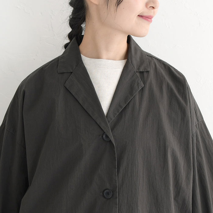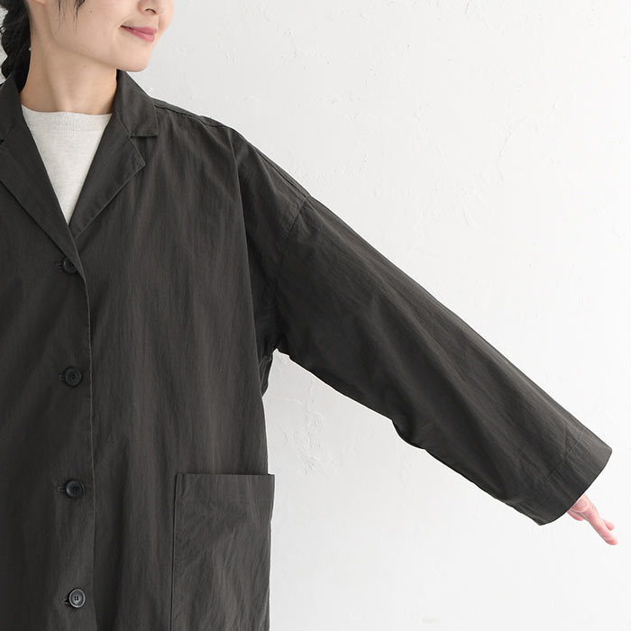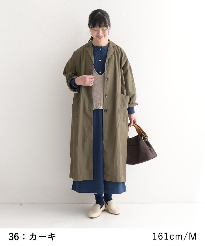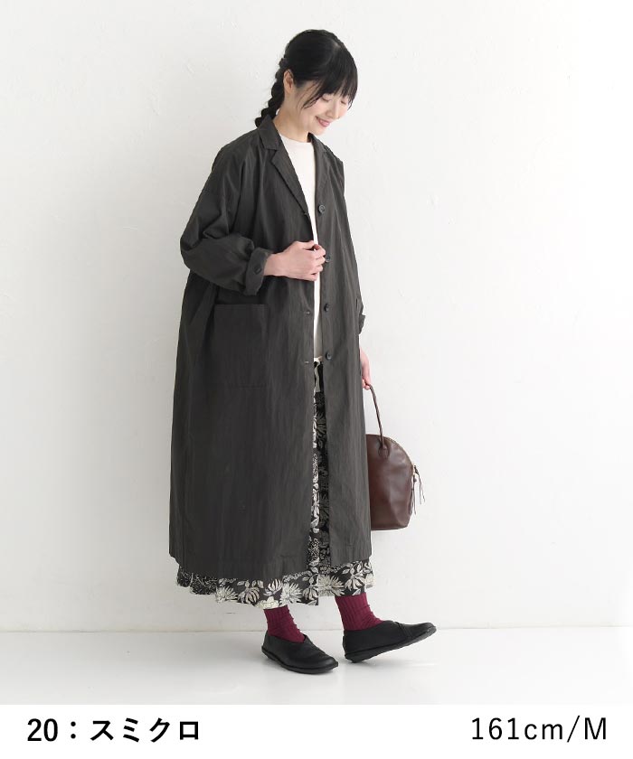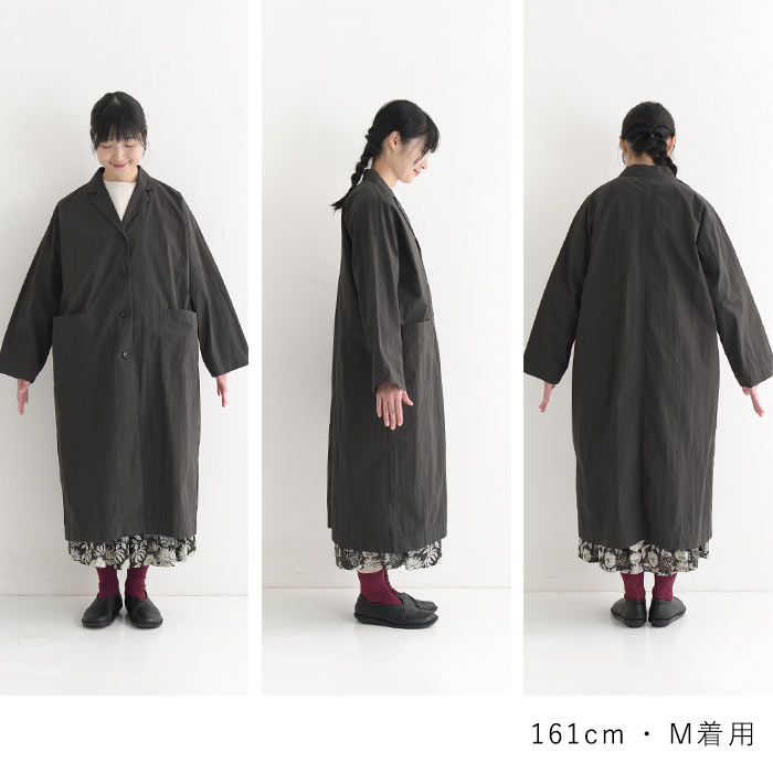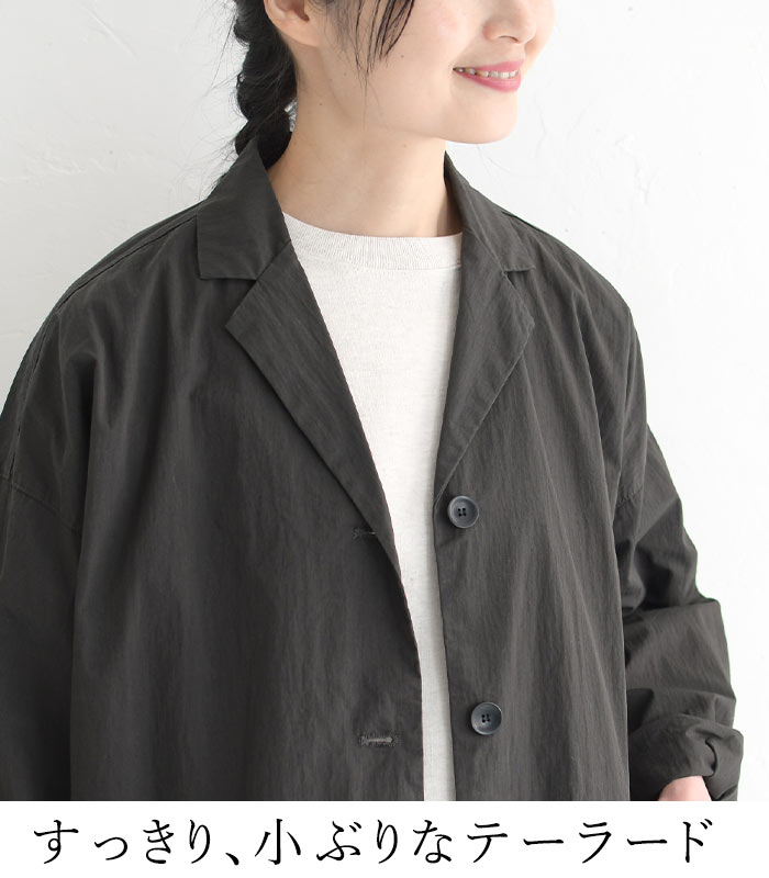オリジナル 高密度コットン ヴィンテージ ワイドコート テーラード ライトアウター 羽織り M~3L/着後レビューでクーポン☆ アウター ロング丈 体型カバー レディース エコロコ e+ Ms,Ls,LL,3L,/大きいサイズ 春 秋 24SS0216,