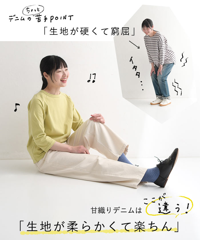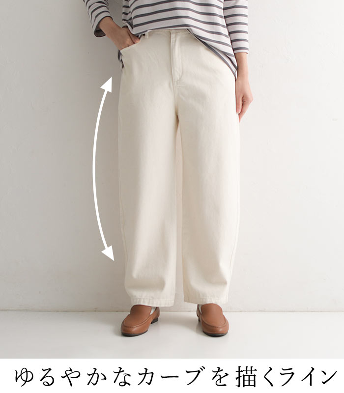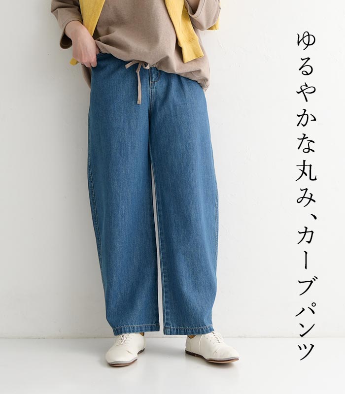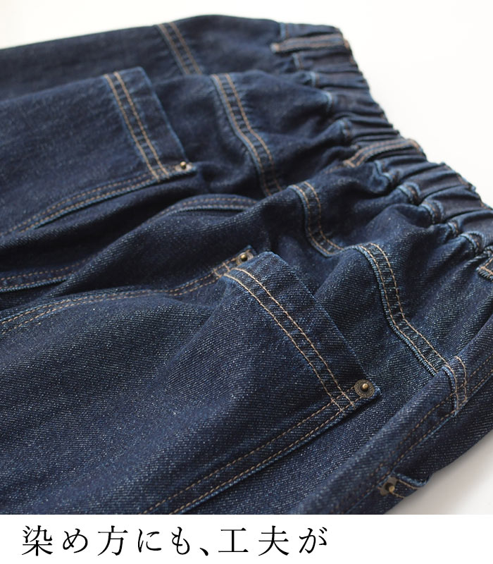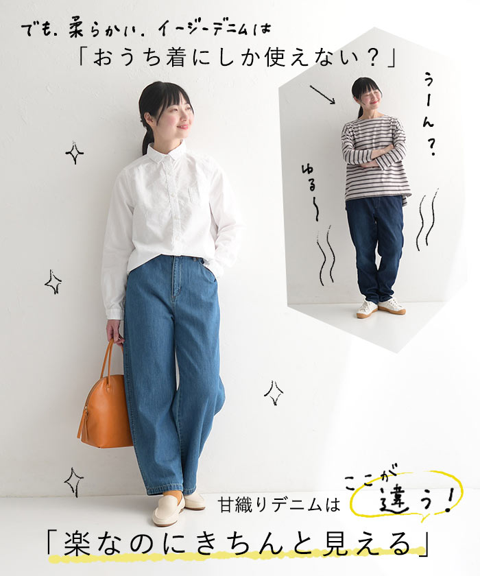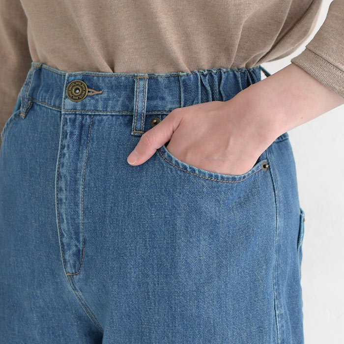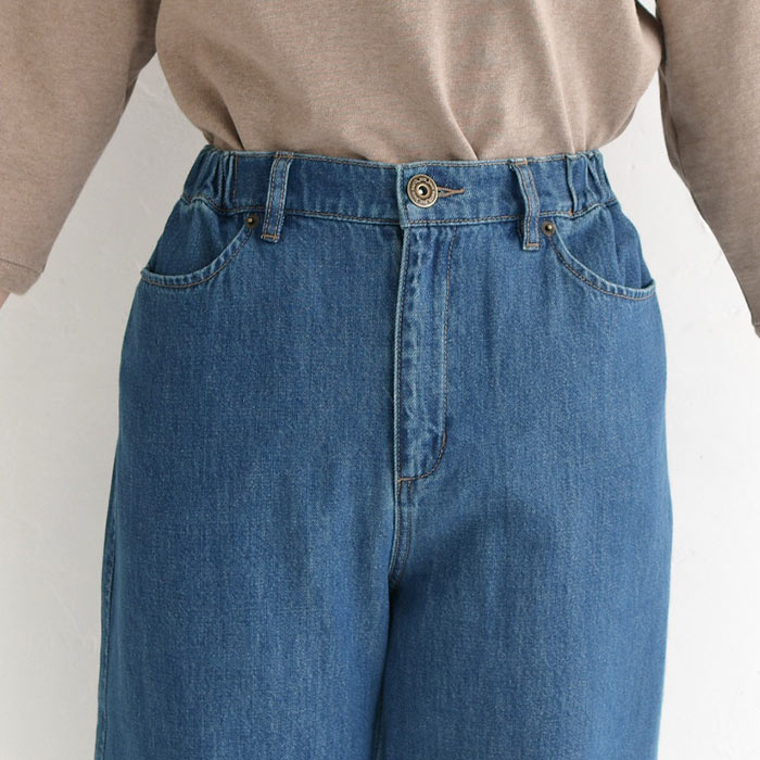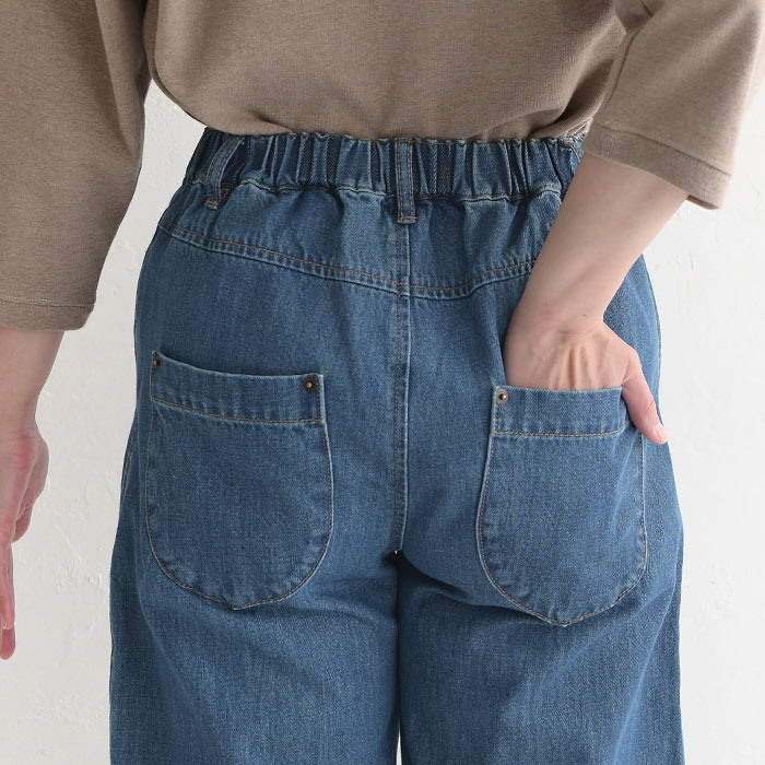 ワイドパンツ 甘織りデニム ジップカーブパンツ ウエストゴム レディース / 着後レビューでクーポン☆ カジュアル ボトムス 体型カバー エコロコ e+ Sm,Ms,Ls,LL,3L,/大きいサイズ 春夏 秋 24SS0216, w26,