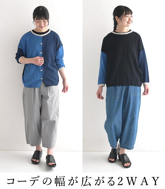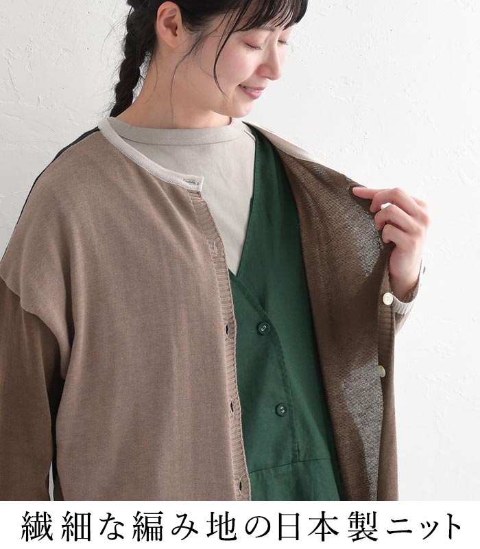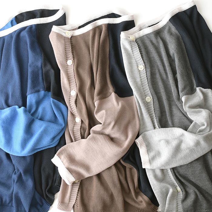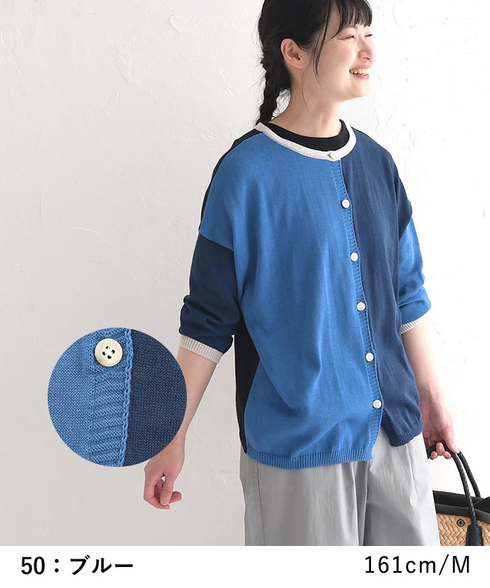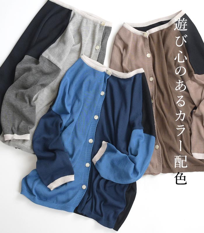 【25日限定 最大100%バック 要エントリー】M~3L D*g*y 日本製 前後2way ブロックカラー 薄手 カーディガン サマーニット/ カジュアル ナチュラル 体型カバー 羽織り 長袖 トップス 涼しい エコロコ レディース sel, Ms,Ls,LL,3L,/春夏 秋 大きいサイズ 24SS0621,