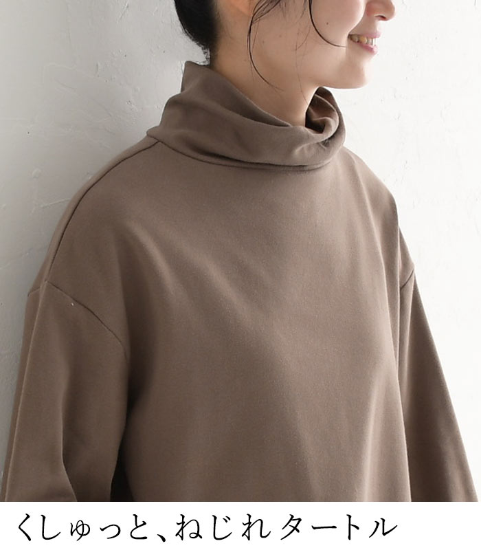 M〜3L プルオーバー 長袖 レディース タートル あったか 伸びる 綿/ 着後レビューでクーポン☆ カジュアル コットン 体型カバー ゆったり ストレッチ トップス 無地 エコロコ e+, Ms, Ls, LL, 3L,/ 秋冬 24AW0906,
