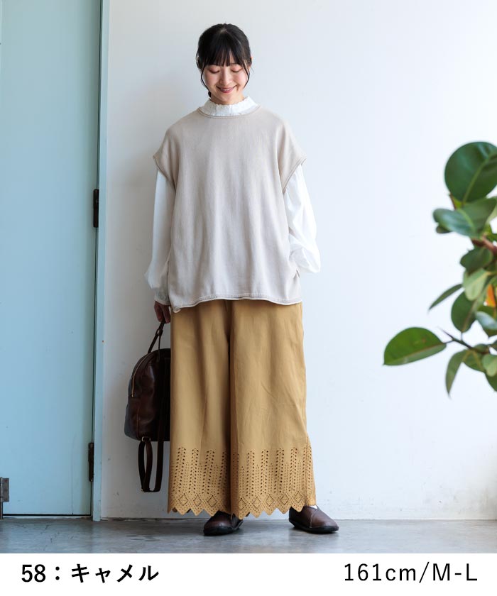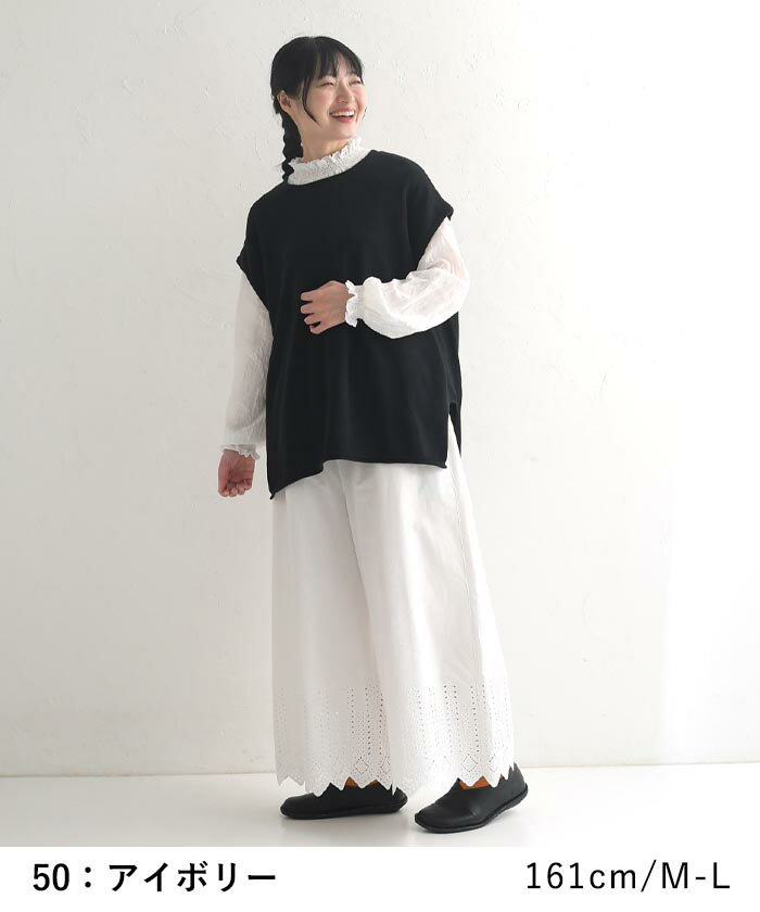 【メール便送料無料】 M〜3L フレアパンツ ワイド レディース ワンピースの下 コットン m.n/カジュアル インナーパンツ ペチパンツ 体型カバー ゆったり ロング ボトムス エコロコ sel, Ms,Ls,LL,3L,/春夏 秋冬 24AW0904,
