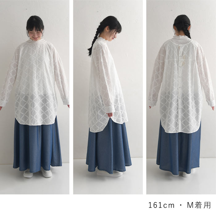チュニック 長袖 ブラウス シャツ レディース 大きいサイズ D*g*y dgy 綿ローン コットン100% M〜3L/ カジュアル 2WAY ワイド ディージーワイ 体型カバー ゆったり トップス エコロコ sel, Ms, Ls, LL, 3L,/ 春 秋 冬 24AW0823,